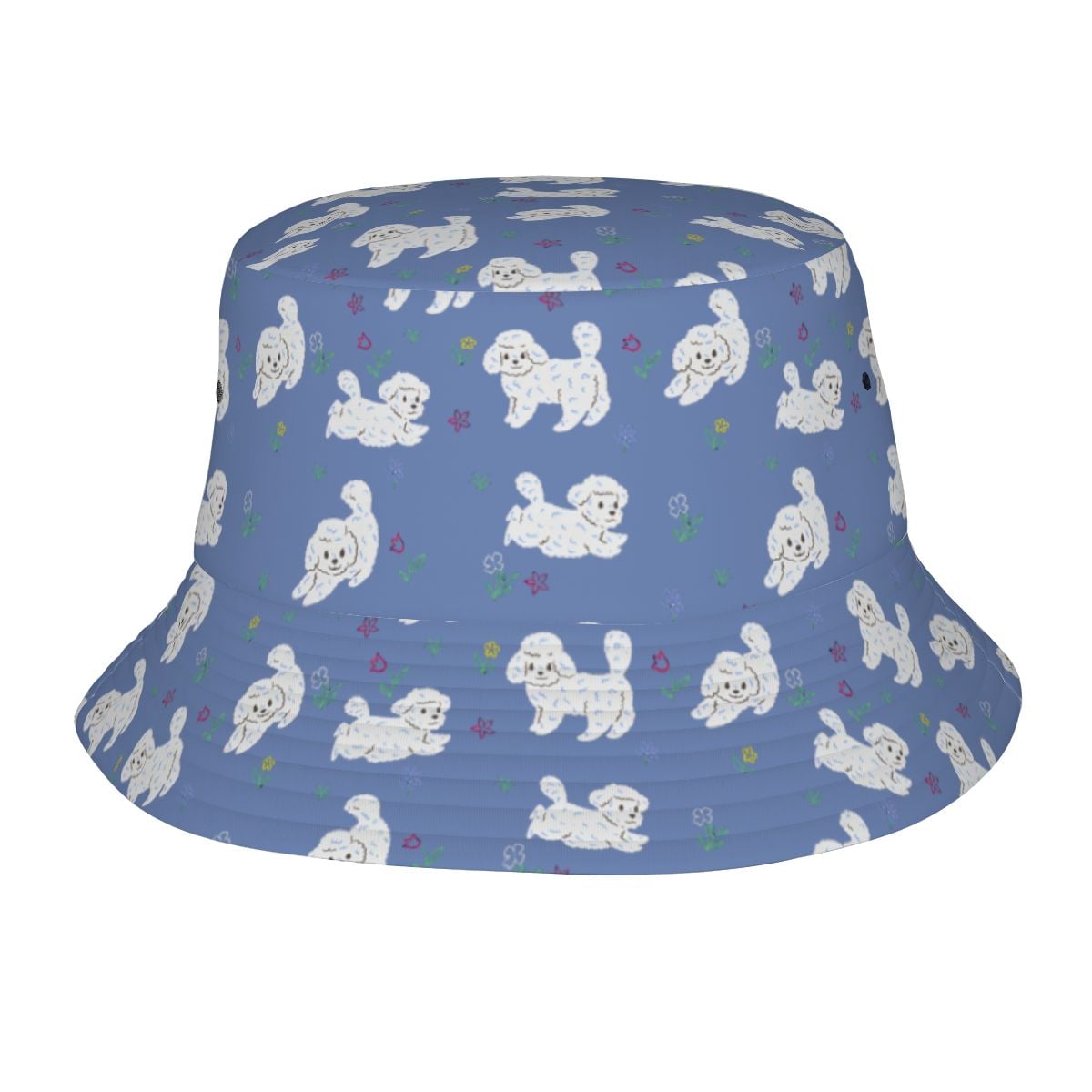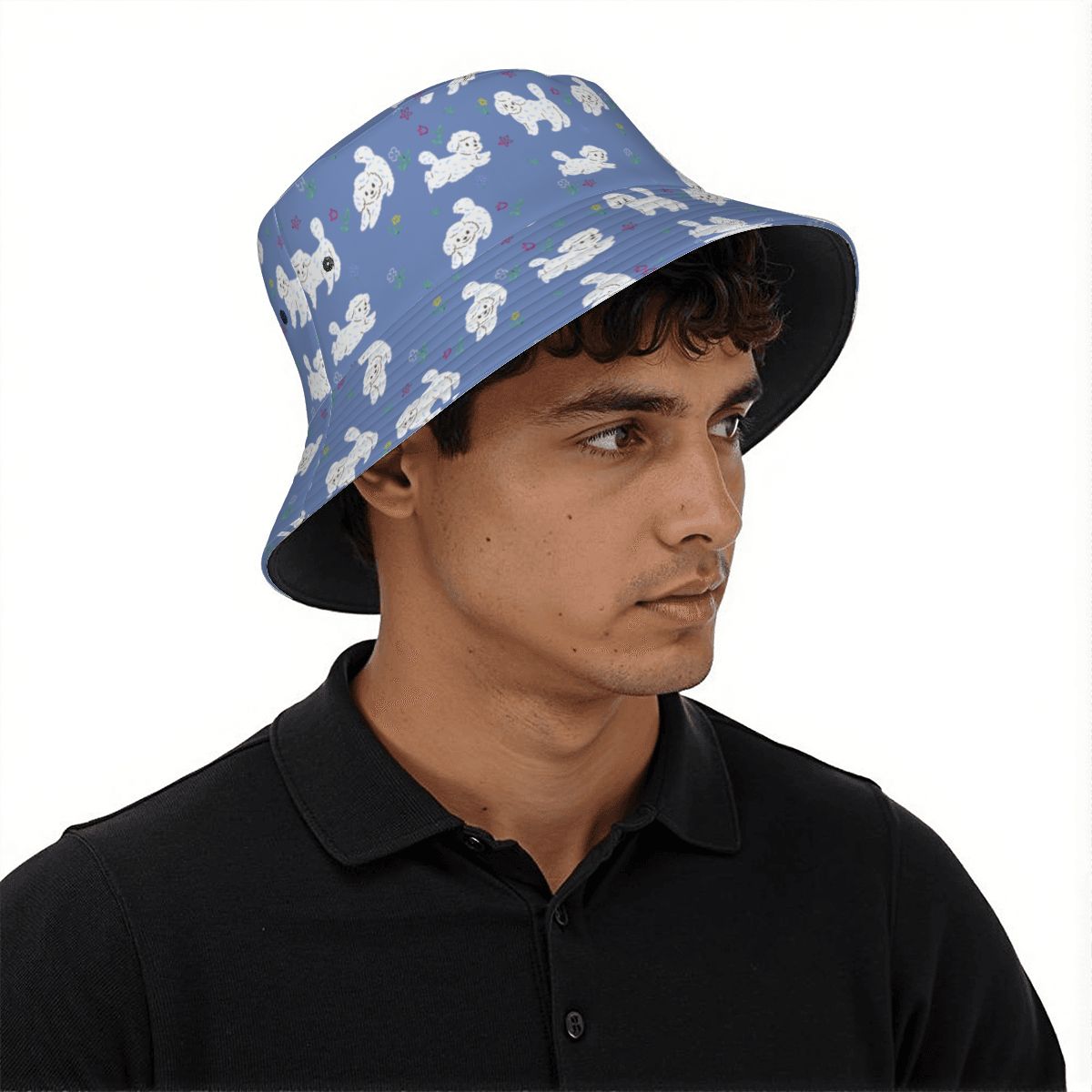 Playful Maltese in a Garden Stroll Bucket Hat-Hats & Caps-Accessories,Dog Dad Gifts,Dog Mom Gifts,Hats,Maltese-Slate Blue-One Size-1