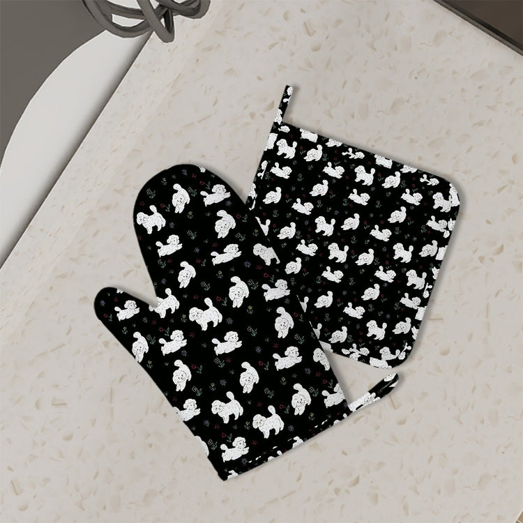 Playful Maltese in a Garden Stroll Oven Mitts and Pot Holder Set