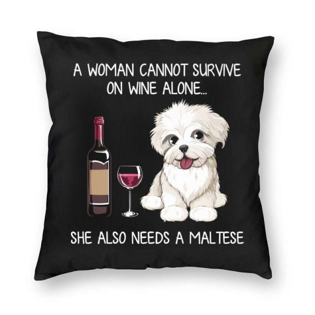 If you're a Maltese mom who also loves wine - then this most adorable throw pillow is for you!