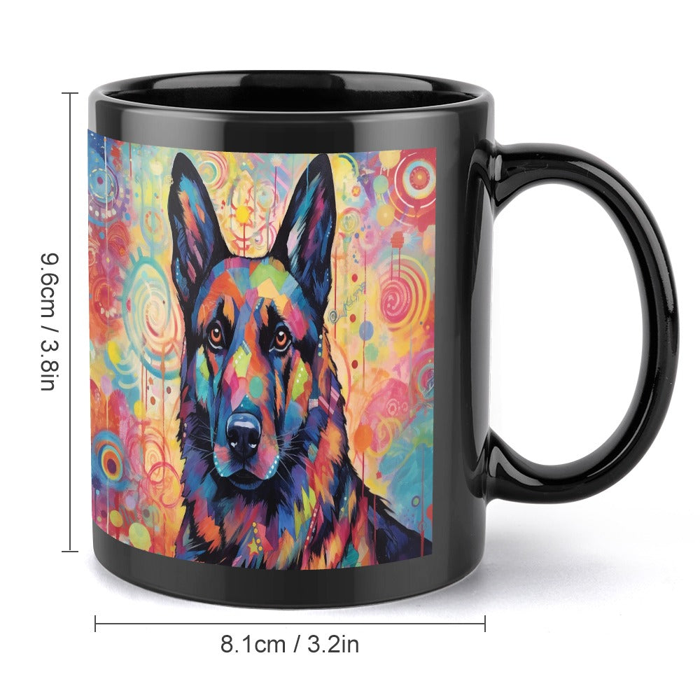 Transform your coffee ritual with our electrifying German Shepherd with Abstract Patterns Coffee Mug.