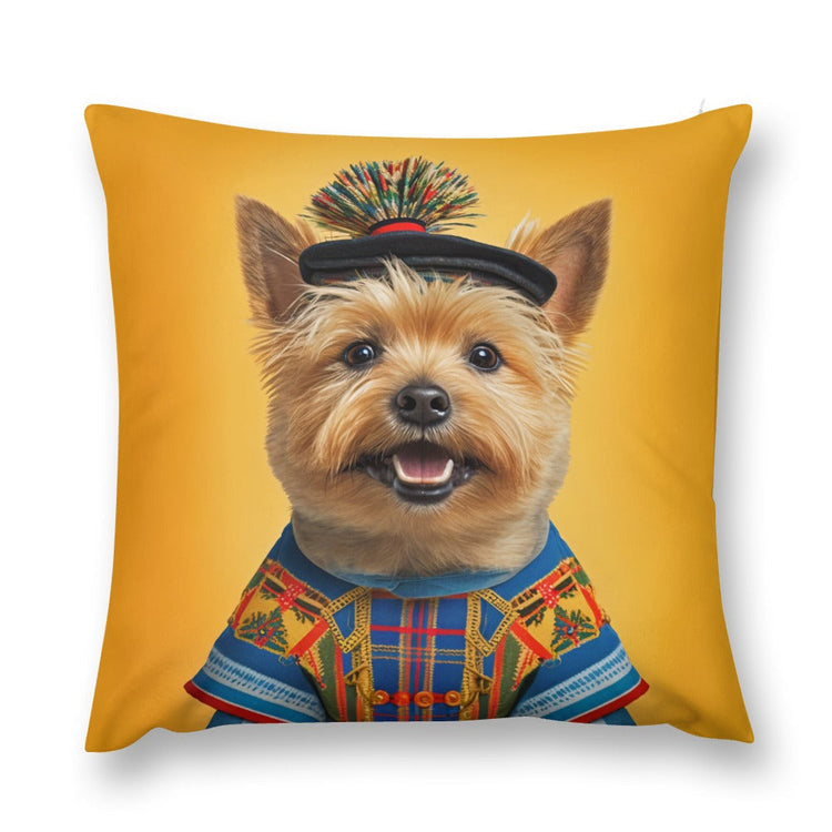 Step into a world where canine elegance meets historical charm with our Traditional Threads Norwich Terrier Plush Pillow Case.