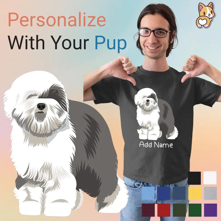 Show your love for your favorite four-legged friends with our pawfect gifts designed especially for Old English Sheepdog lovers. Personalize with your pup's name! Featuring the most adorable Old English Sheepdog artwork, this T-shirt is made from 100% cotton for maximum comfort. Available in 12 colors and 7 sizes, it suits any style.