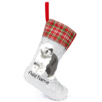 Personalized Old English Sheepdog Shiny Sequin Christmas Stocking