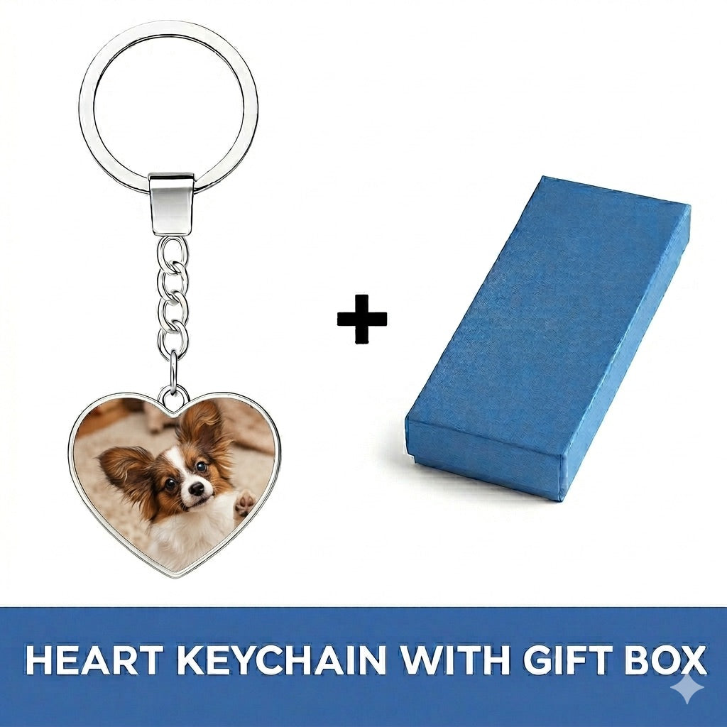 Personalized Papillon Keychain - Heart Shaped - Double-Sided Glass