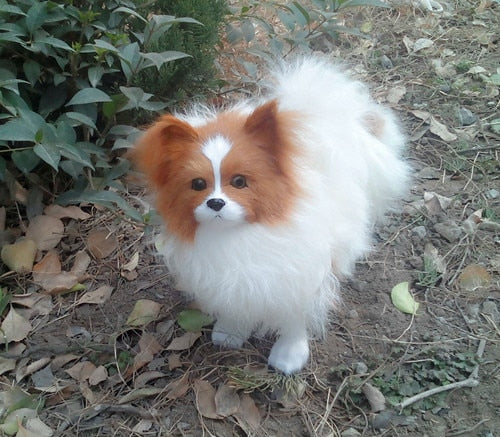 Crafted from high-quality faux fur, resin, and plastic, this realistic Papillon stuffed animal is a heartfelt gift for dog lovers. Its lifelike appearance captures the distinct features of the Papillon breed, including large, butterfly-like ears and long, flowing fur.