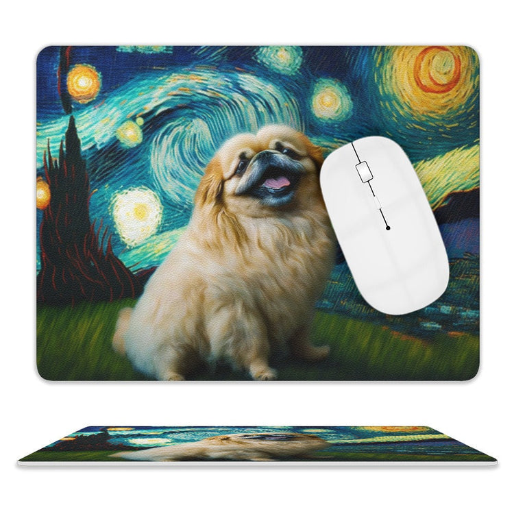 Discover the enchanting blend of art and affection with our Starry Night Serenade Pekingese Leather Mouse Pad.