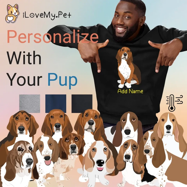 Unleash your furry love with our unique gifts for Basset Hound lovers. This hoodie is more than just clothing; it's a heartfelt tribute to your beloved pet. Customize it with your pup's likeness and name, and choose from true-to-breed coat color options.