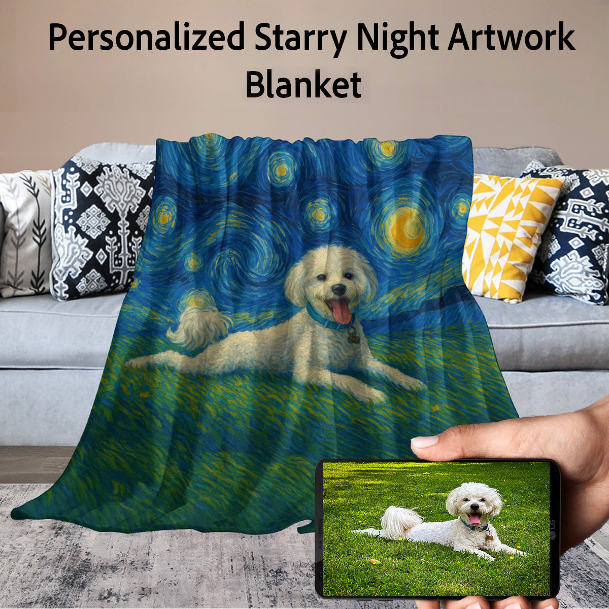 Personalized Starry Night Artwork Custom Bichon Frise Blanket