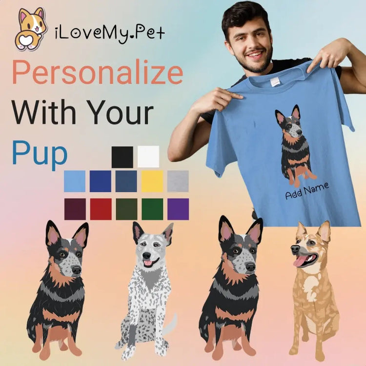 Show your love for your favorite four-legged friends with our pawfect gifts designed especially for Blue Heeler lovers. Customize this T-shirt with the coat color of your pup and personalize it with their name. True-to-breed coat color options are available to make it truly special. Made from 100% cotton, it offers comfort and style.