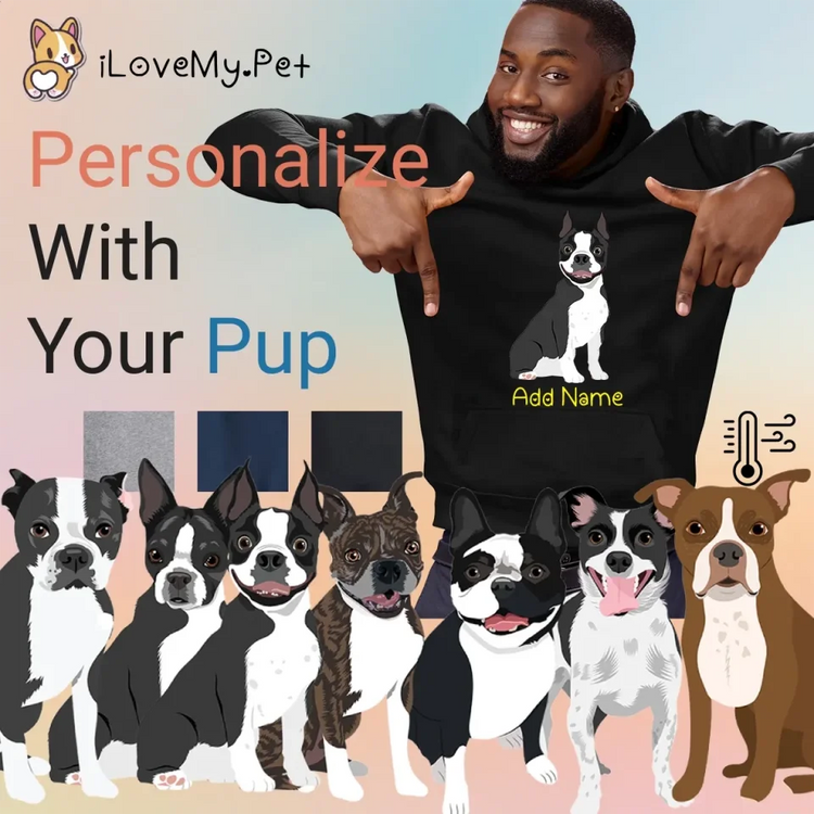Unleash your furry love with our unique gifts for Boston Terrier lovers. This hoodie is a heartfelt way to celebrate your bond with your beloved pet. Customize it with your pup's likeness and their name, making it a truly personal piece. True to breed coat color options ensure an authentic representation of your Boston Terrier.