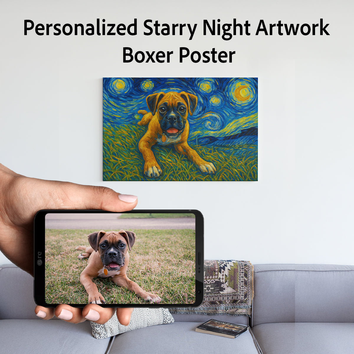 Personalized Starry Night Artwork Boxer Dog Pre-framed Canvas Poster