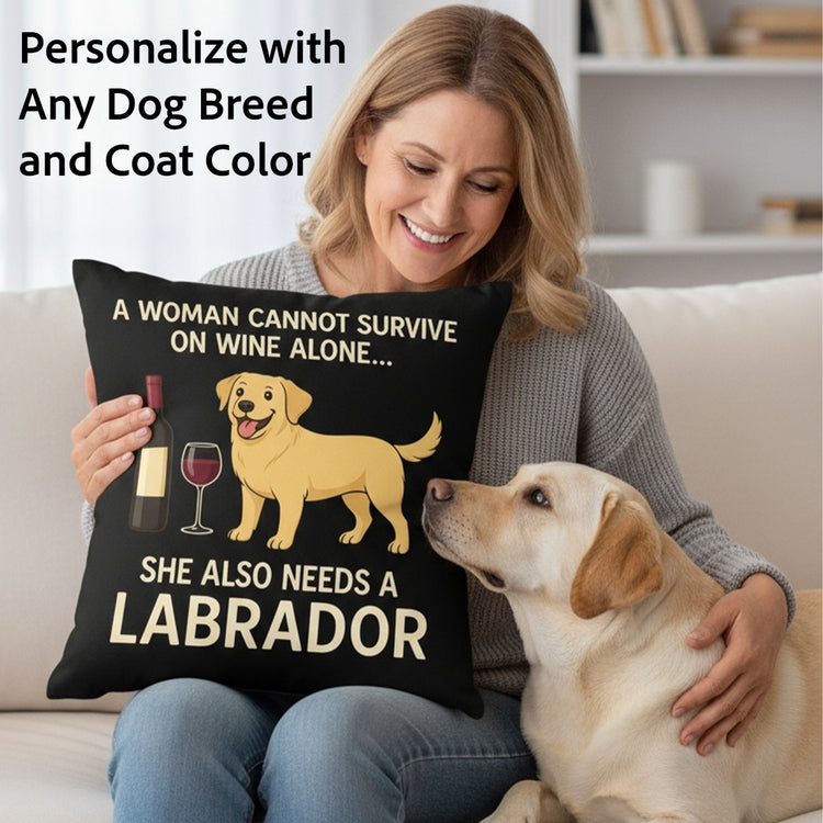 Celebrate the love of wine and your furry friend with our Personalized āA Woman Cannot Survive on Wine Aloneā¦ā Custom Dog Pillowcase!