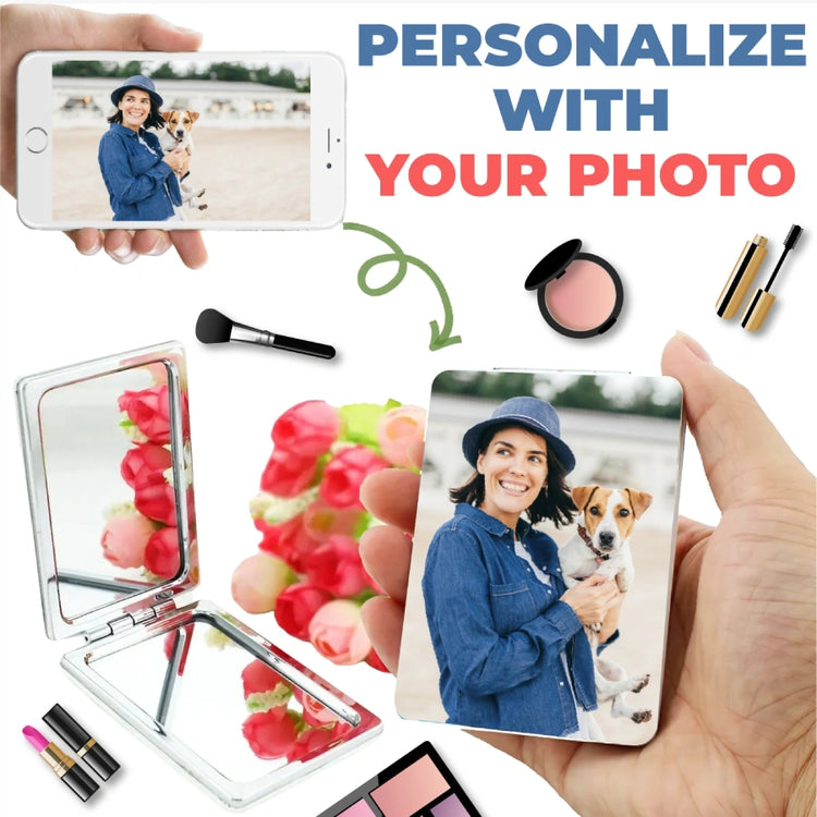 Make your makeup routine more special with these cutest folding makeup mirrors personalized with your pup's photo!