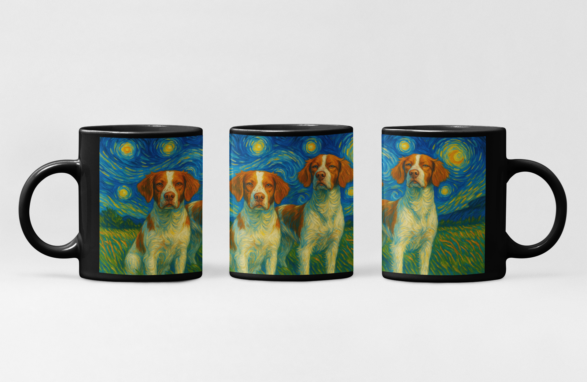 Celebrate your love for your Brittany Spaniel with our Personalized Starry Night Artwork Coffee Mug! This unique mug transforms a cherished photo of your furry friend into a stunning piece of art.