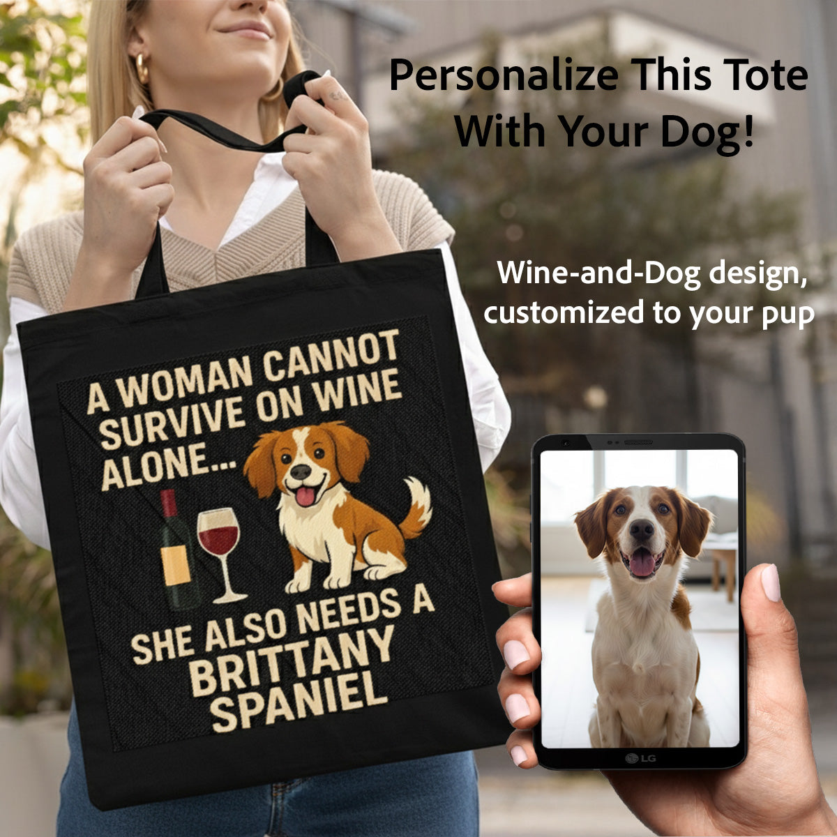 Personalized “A Woman Cannot Survive on Wine…” Custom Miniature Pinscher Tote Bags-Accessories-Accessories,Bags,Dog Mom Gifts,Miniature Pinscher,Personalize Artwork-1
