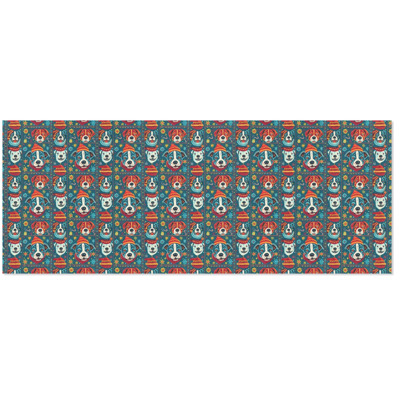 Each roll showcases these lovable canines in a playful dance of colors, surrounded by festive snowflakes and stars. Their broad smiles and joyful expressions invite everyone into a world of holiday merriment.