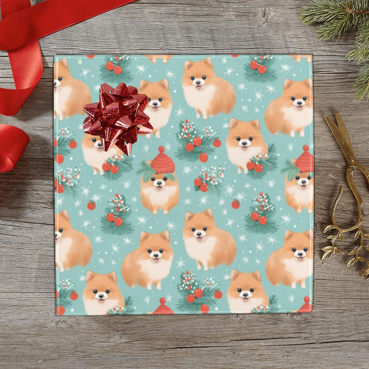 Each roll showcases fluffy Pomeranians, their eyes sparkling with the magic of the season. One even dons a festive red hat, adding a playful touch to your gift-giving experience.