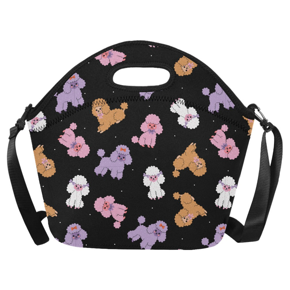 Colorful Poodles Love Neoprene Lunch Bag-Black-ONESIZE-41
