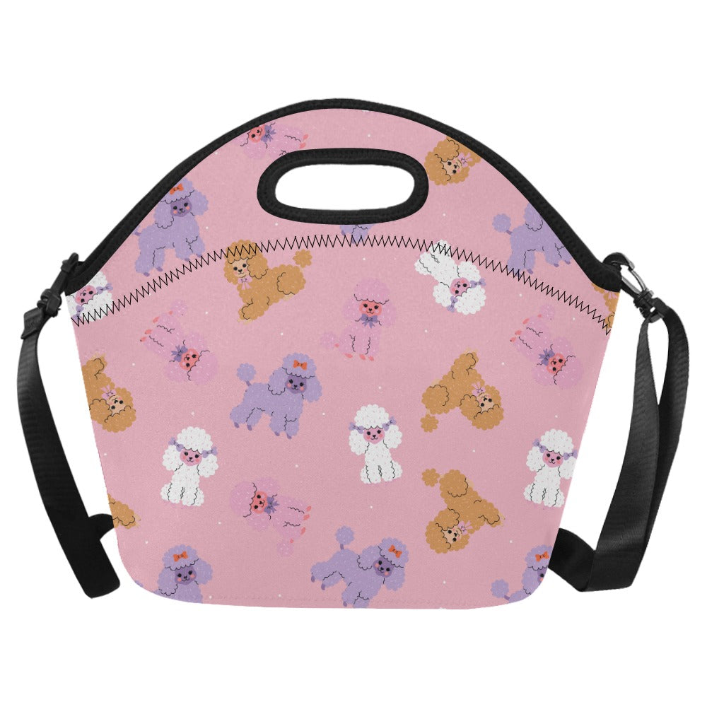 Colorful Poodles Love Neoprene Lunch Bag-Pink-ONESIZE-6