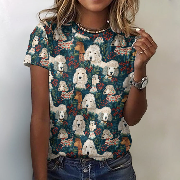Celebrate the elegance of Poodles with our Christmas Canopy Poodle Paradise Women's Cotton T-Shirt!