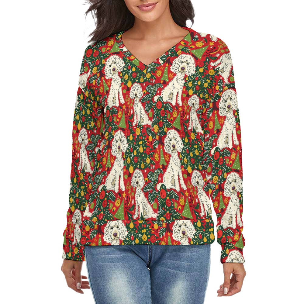 Jingle Bells and Poodle Tails Women's V-Neck Christmas Sweater