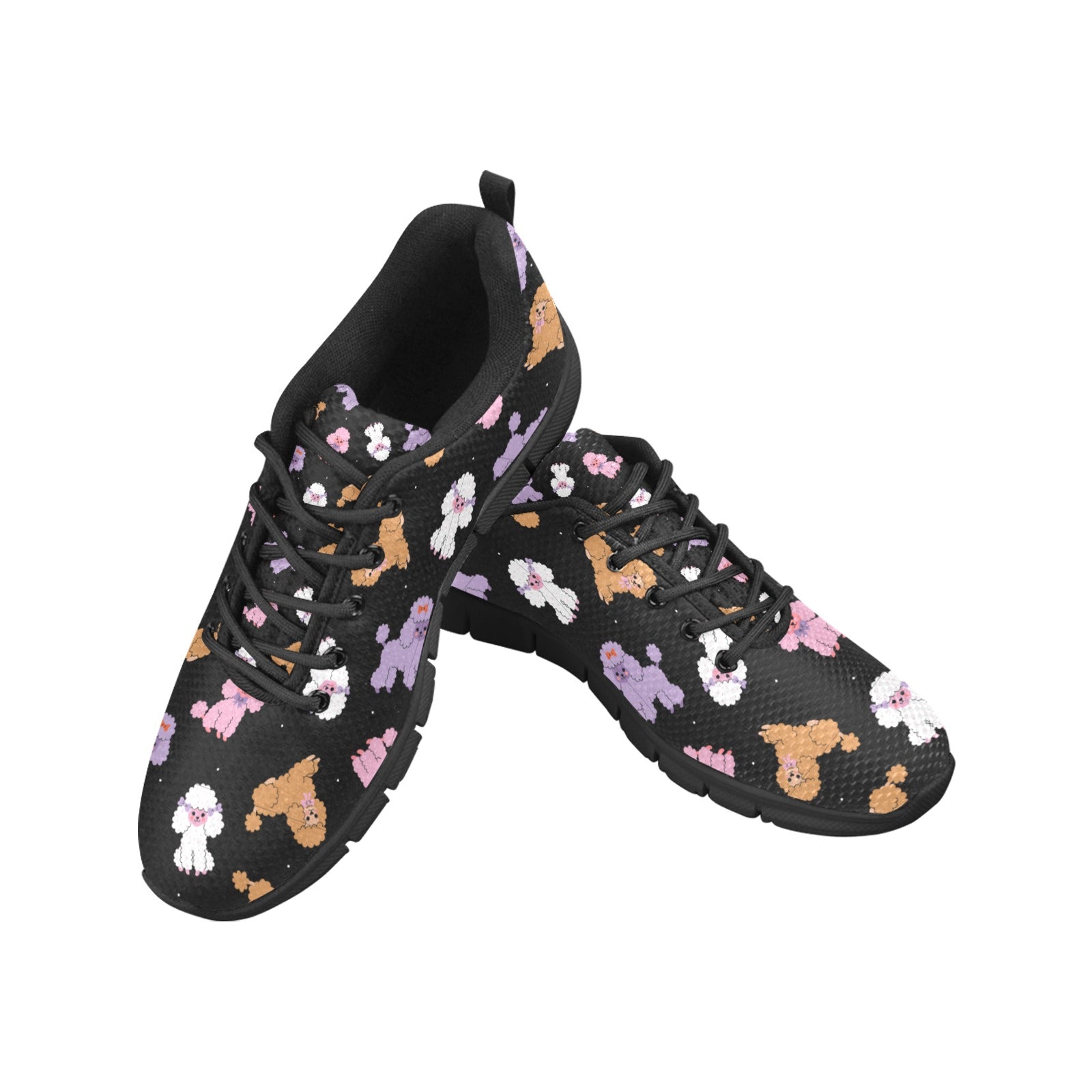 Colorful Poodles Love Women's Breathable Sneakers-Midnight Black-US13-9
