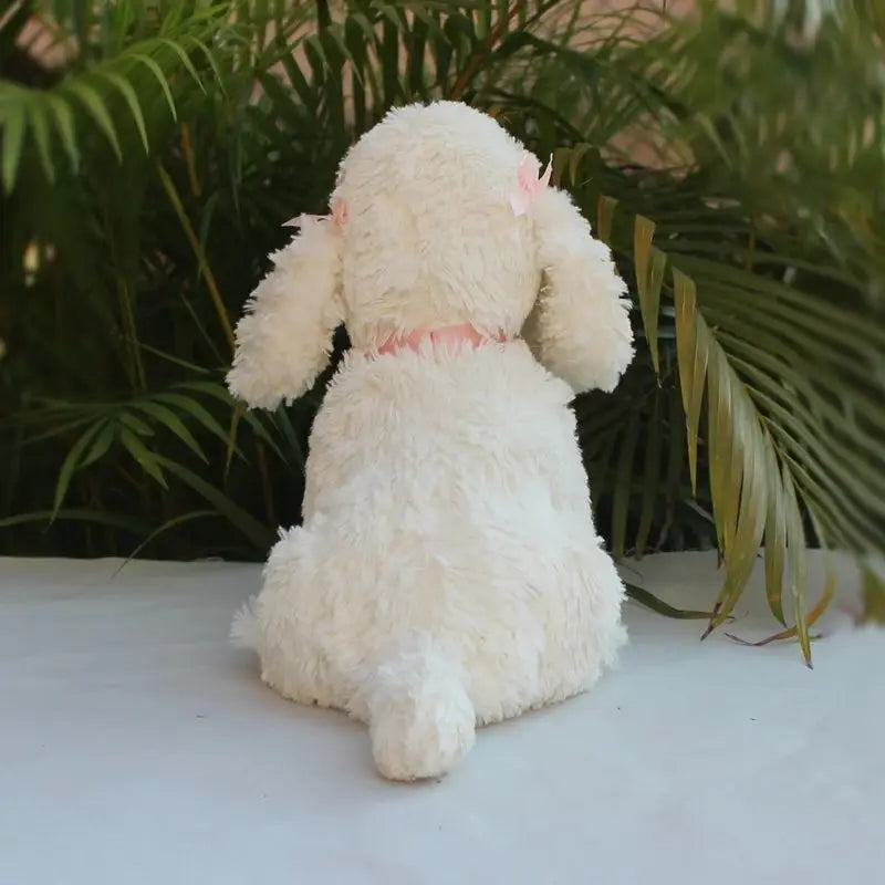 This adorable Poodle Stuffed Anima features a curly white coat, floppy ears, and a sweet expression with round, dark eyes, making it an irresistible companion.