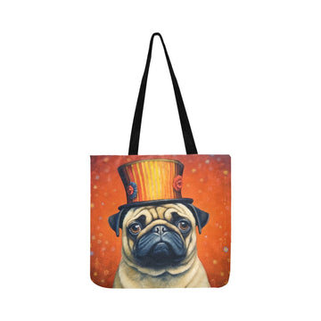 Designed for the art lover and the Pug enthusiast alike, this Pug Bag serves as a functional and fashionable accessory. Whether you're going to the market, carrying books, or need a stylish bag for daily essentials, the Circus Ringmaster Pug Shopping Tote Bag offers both utility and a statement piece that brings joy and elicits smiles from all who see it.