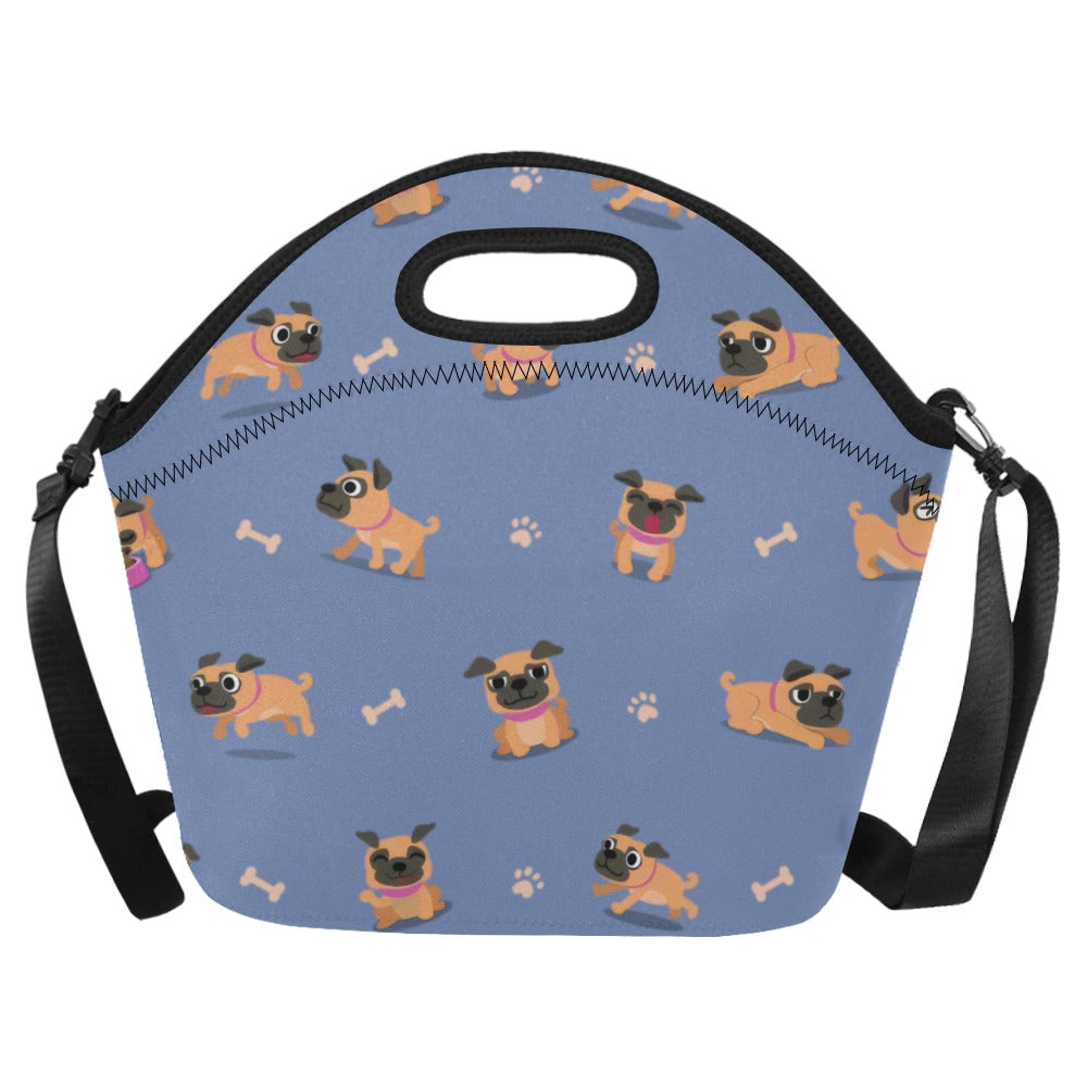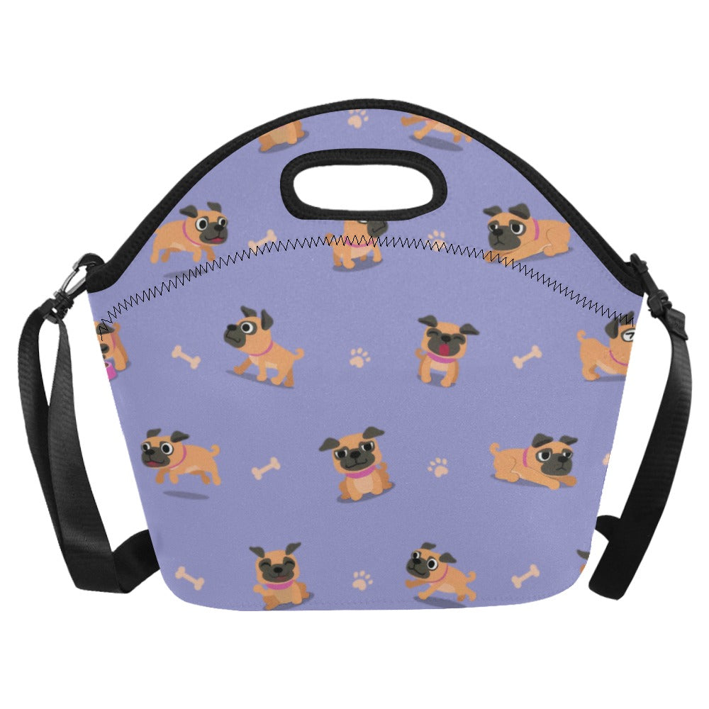 Bring joy to your lunchtime with our Playful Pug Adventure Neoprene Lunch Bag, designed for those who adore their furry friends. This delightful bag features a lively pattern of cartoon Pugs, each showcasing their charming personalities with big round eyes and playful poses.