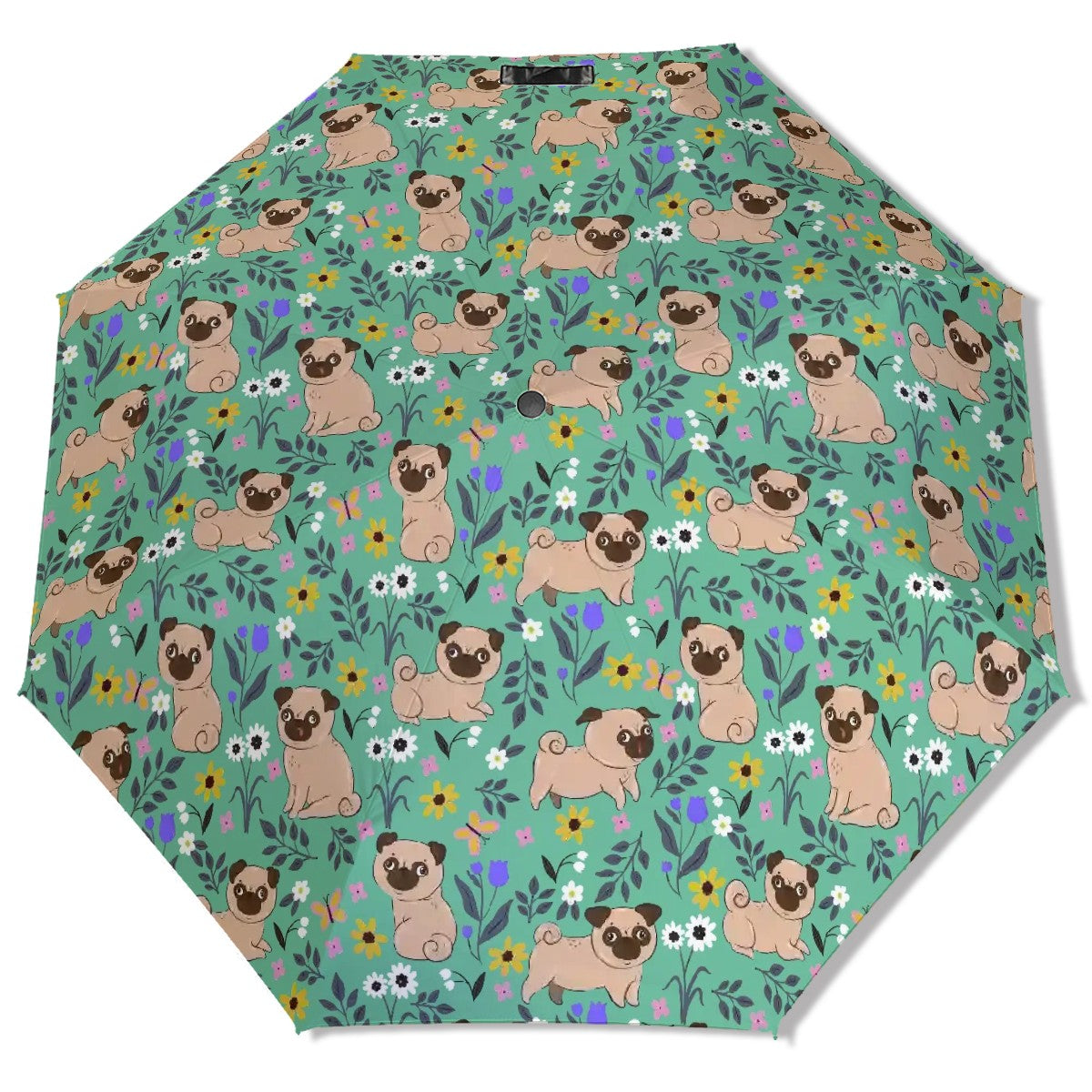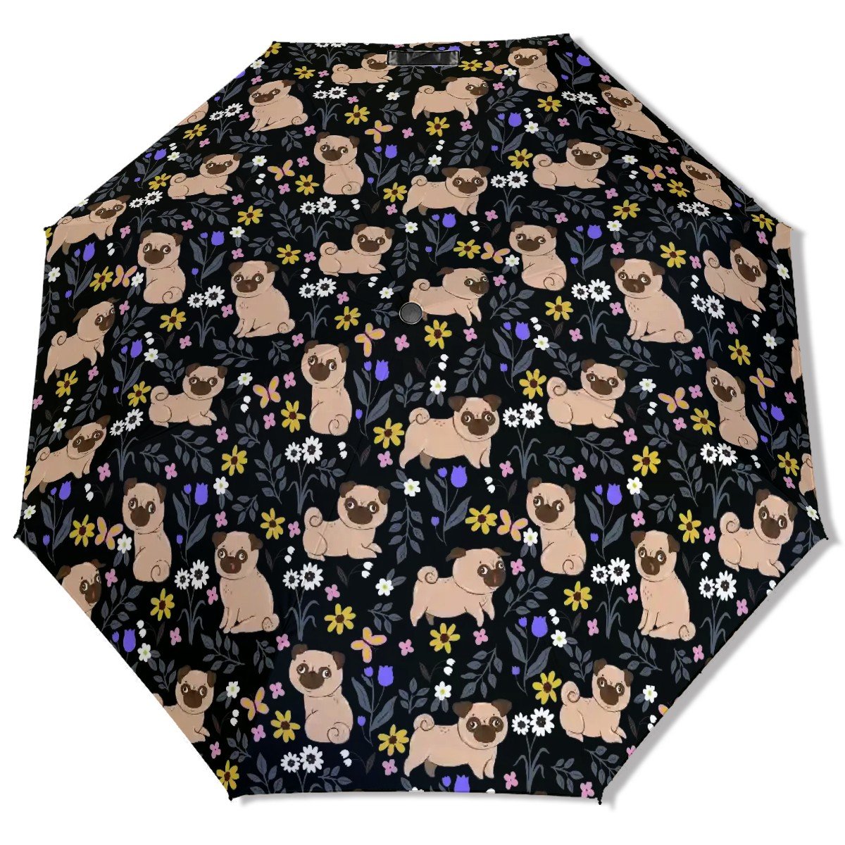 Celebrate your love for Pugs with our delightful Flower Garden Pug Umbrella!