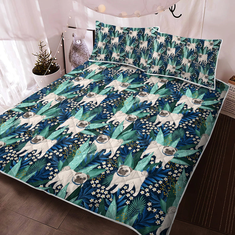 Botanical Pug Bliss Quilted Blanket or Bedding Set - 5 Colors
