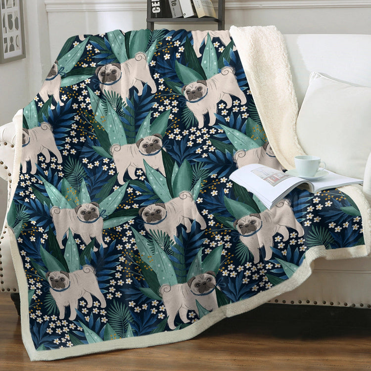 Botanical Pug Bliss Soft Warm Fleece Blanket - 5 Colors