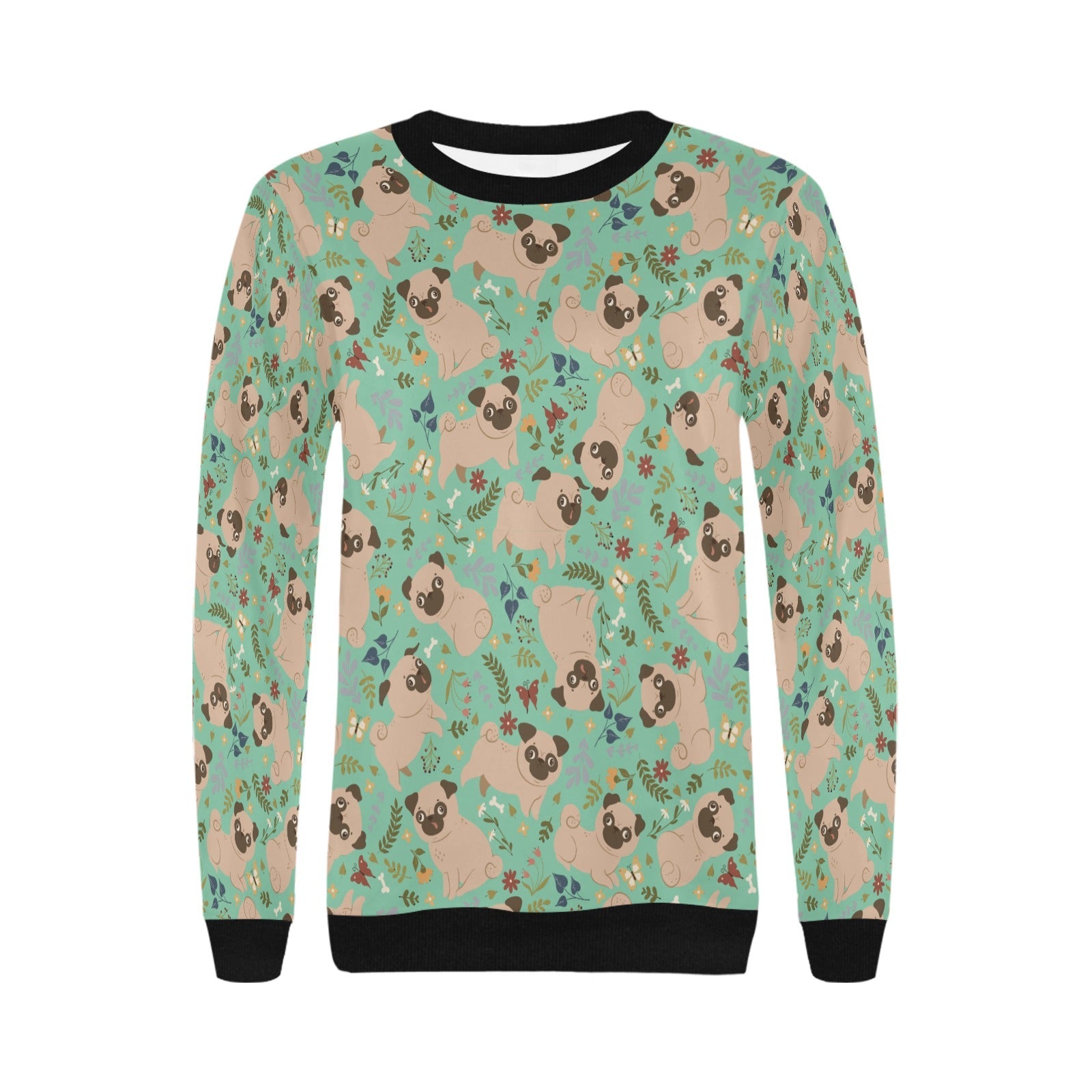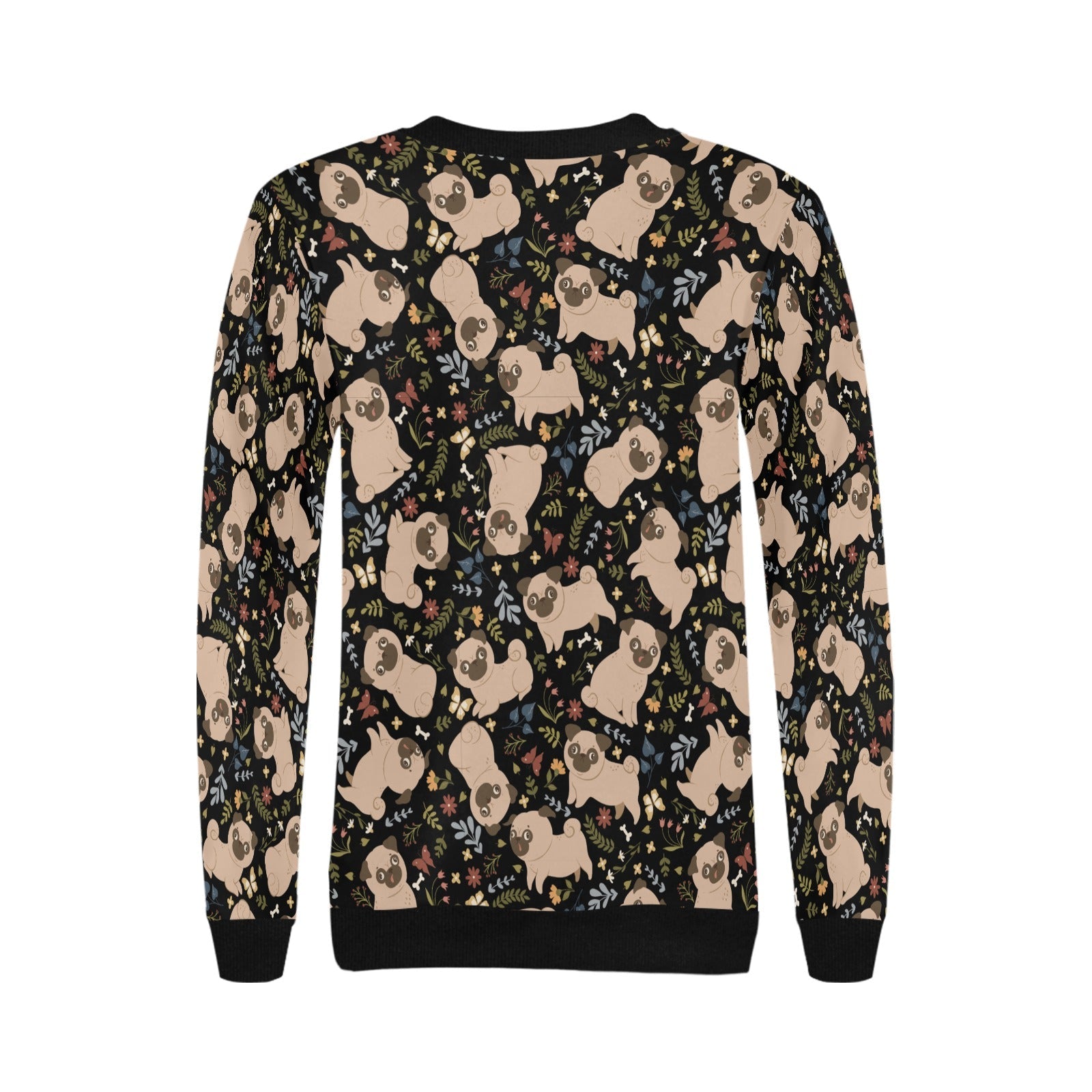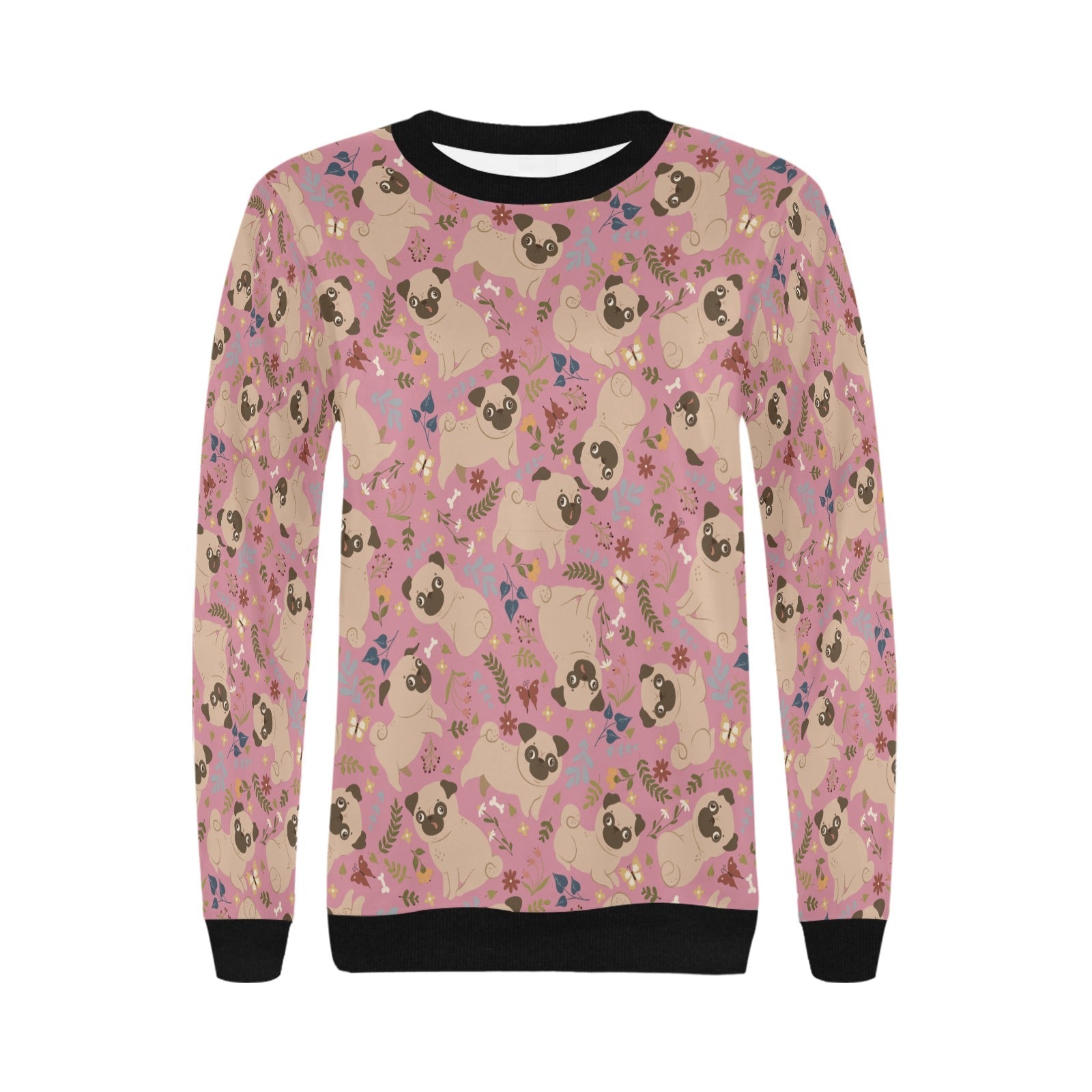 Charming Pugs in Bloom Sweatshirt for Women-Apparel-Apparel, Dog Mom Gifts, Pug, Sweatshirt-Midnight Black-S-1