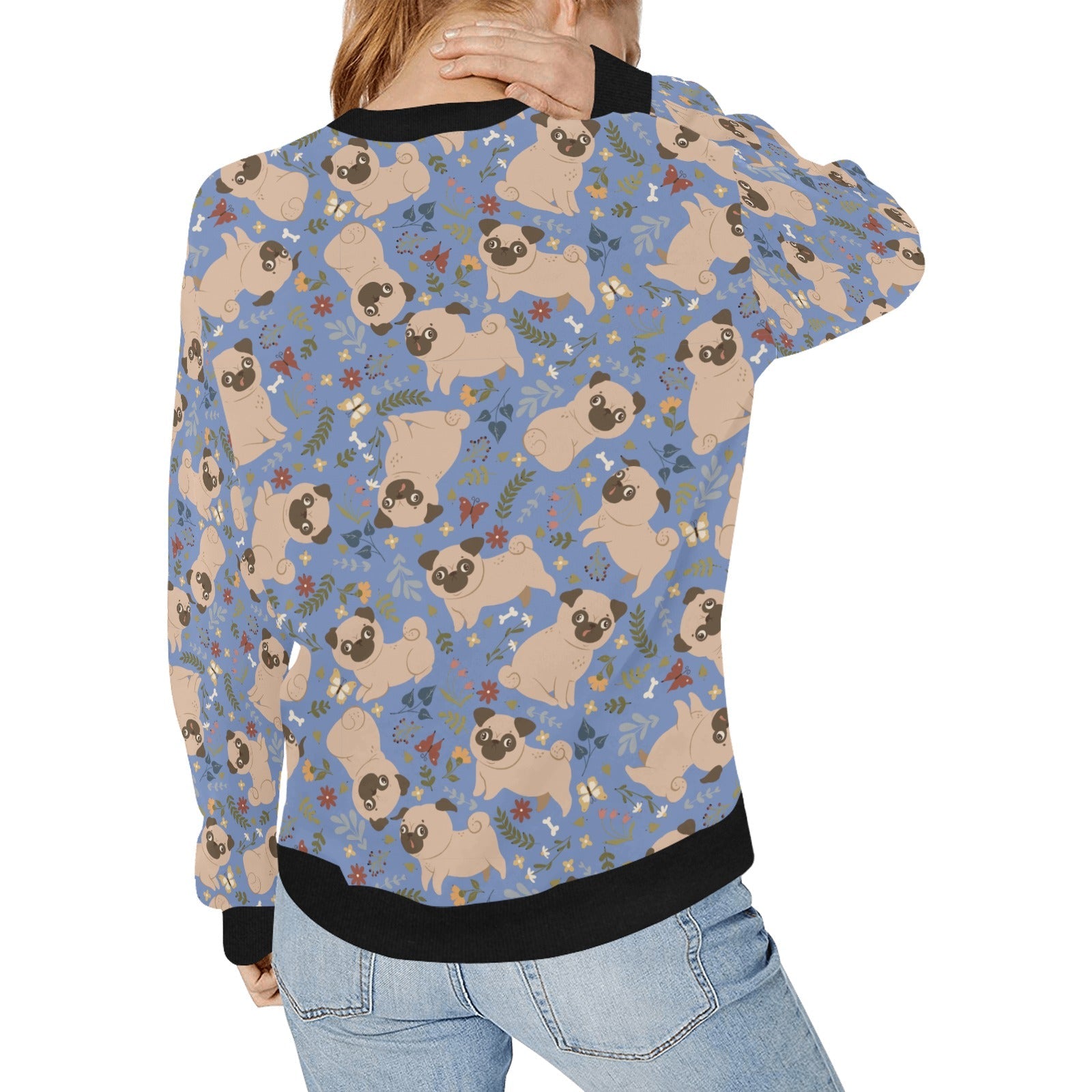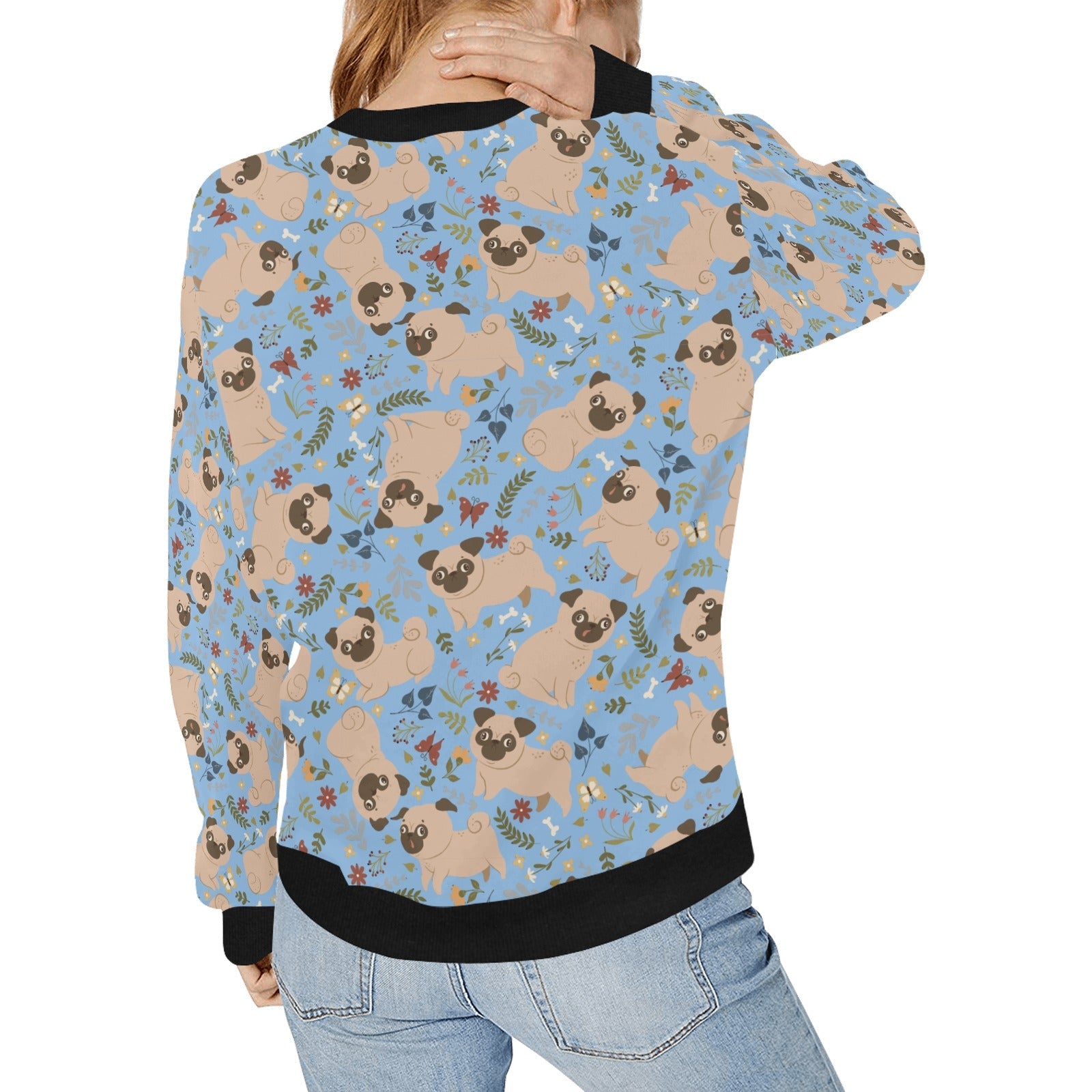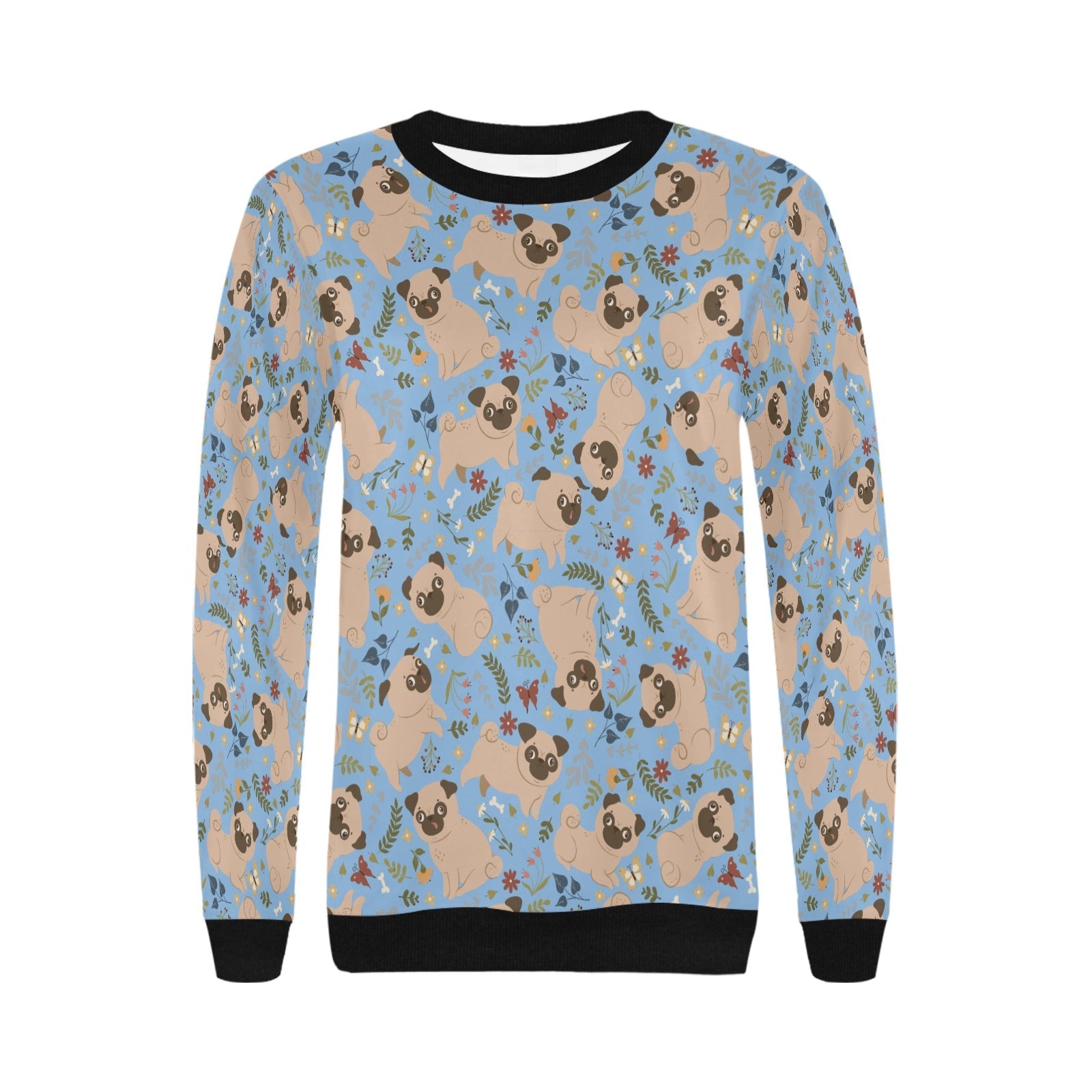Charming Pugs in Bloom Sweatshirt for Women-Apparel-Apparel, Dog Mom Gifts, Pug, Sweatshirt-Sky Blue-S-5