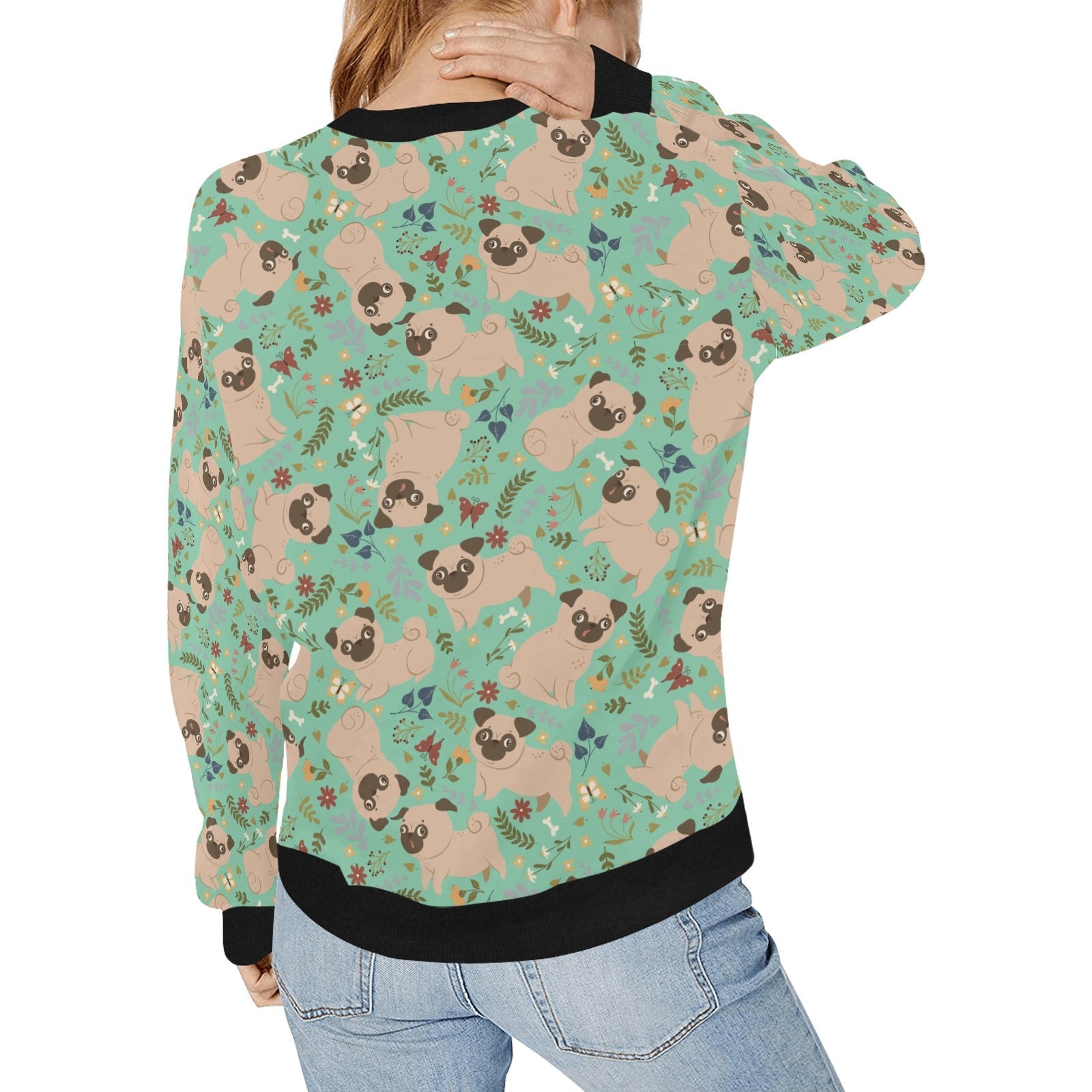 Charming Pugs in Bloom Sweatshirt for Women-Apparel-Apparel, Dog Mom Gifts, Pug, Sweatshirt-Mint Green-S-6