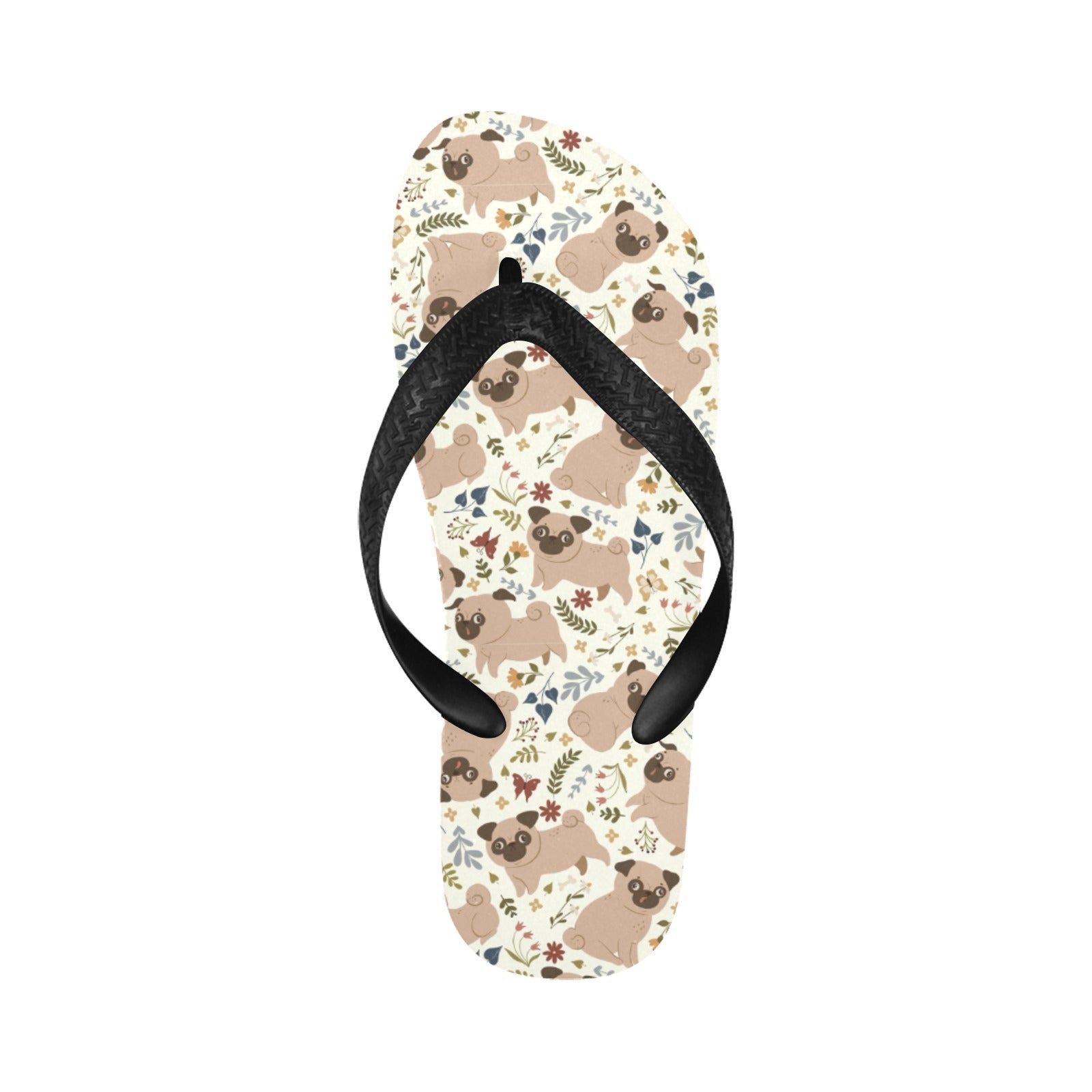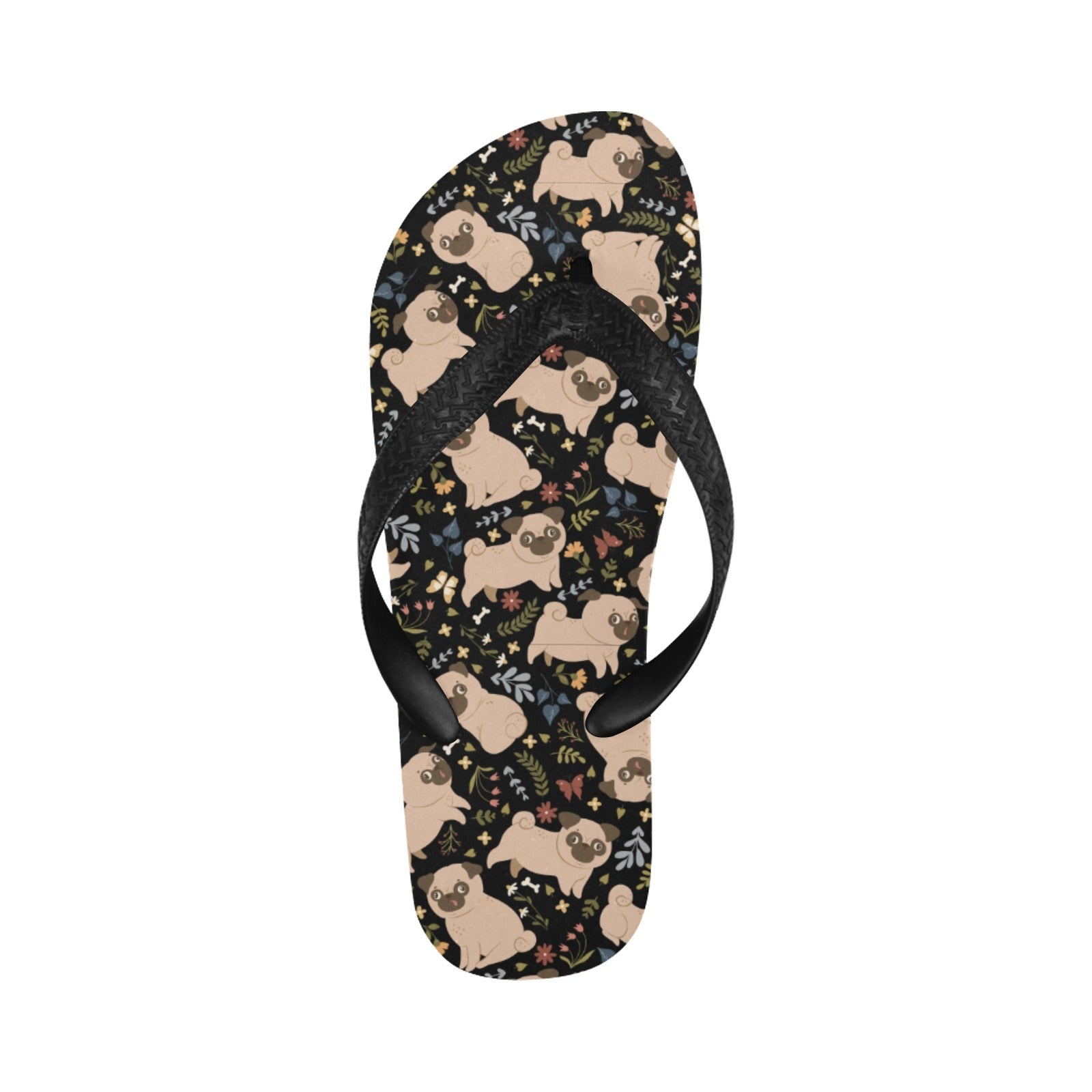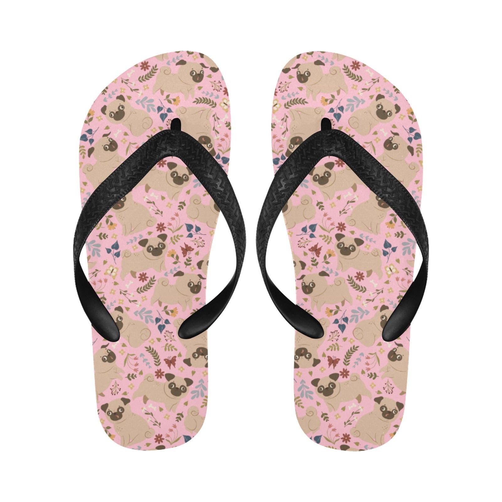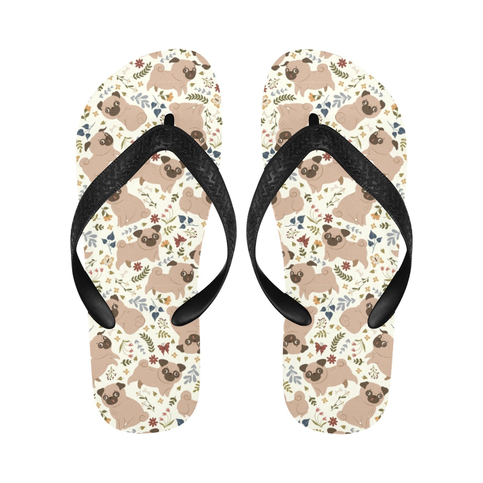 Charming Pugs in Bloom Unisex Slippers-Black-S-24
