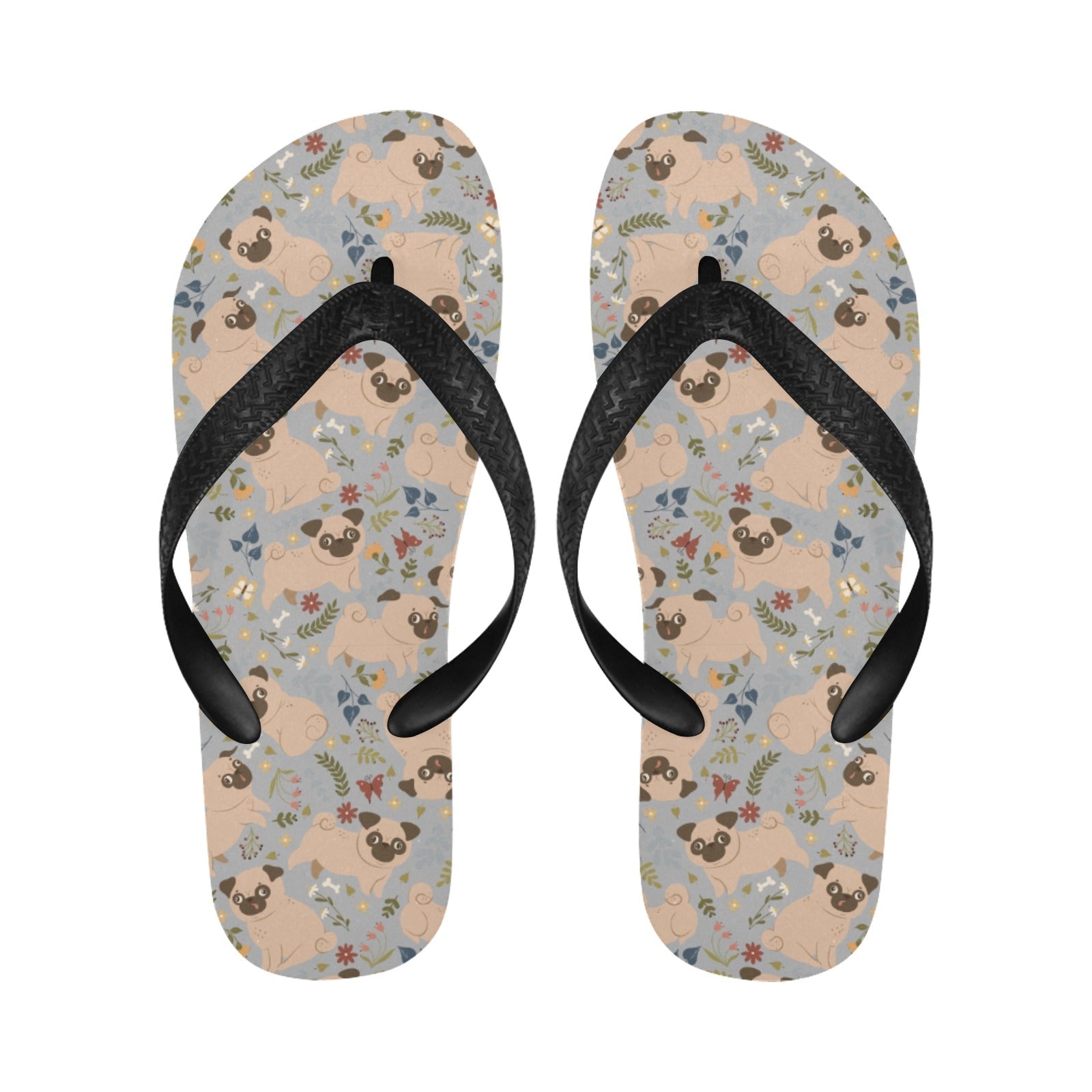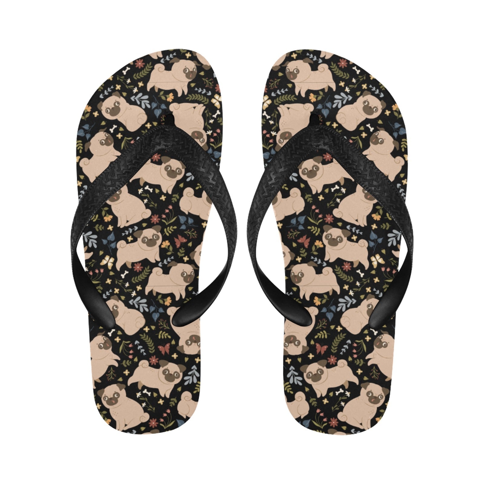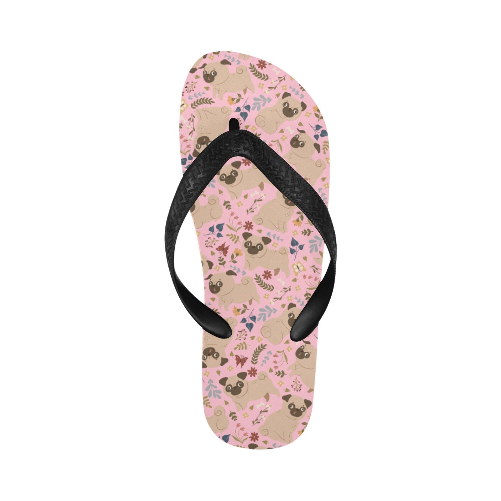 Charming Pugs in Bloom Unisex Slippers-Black-S-24