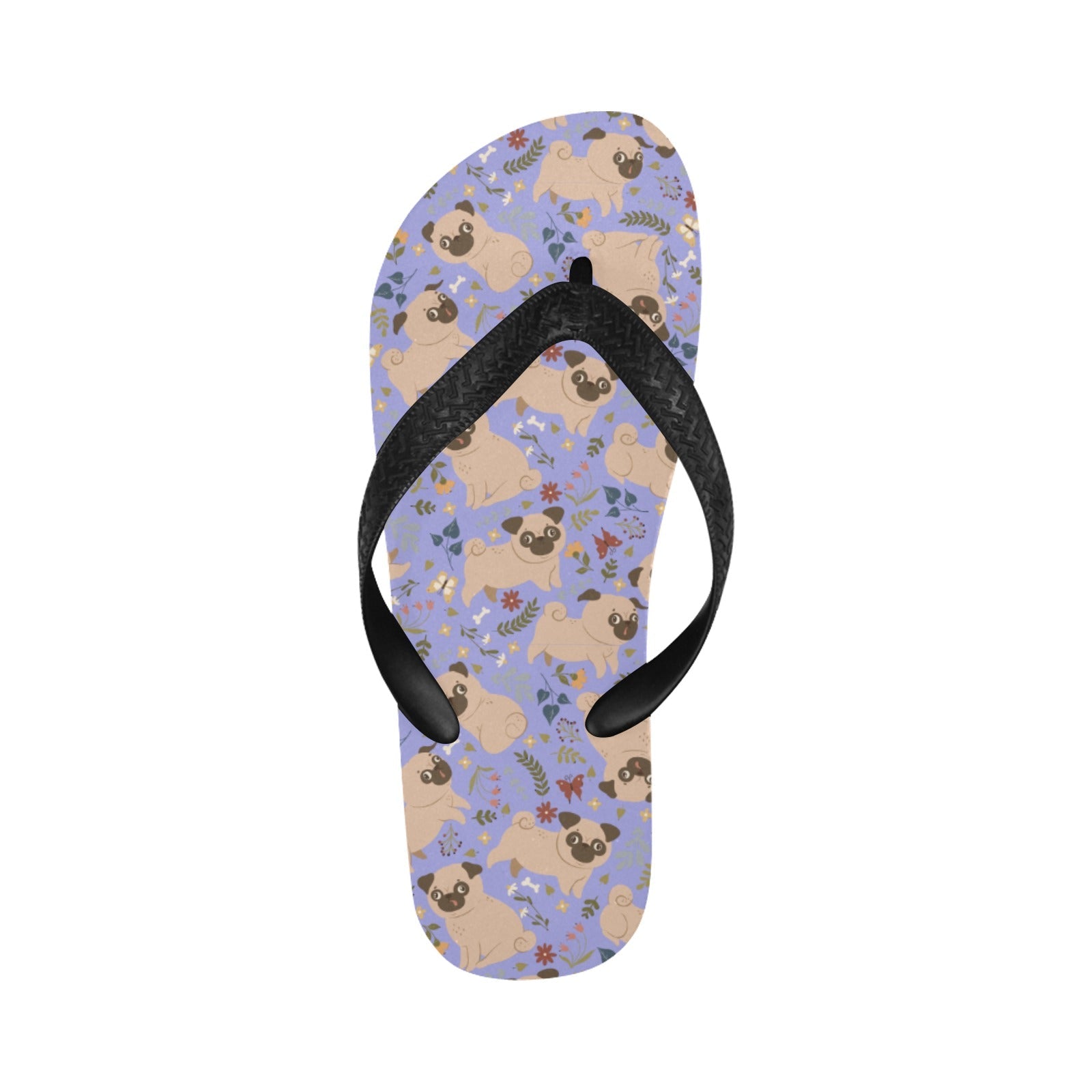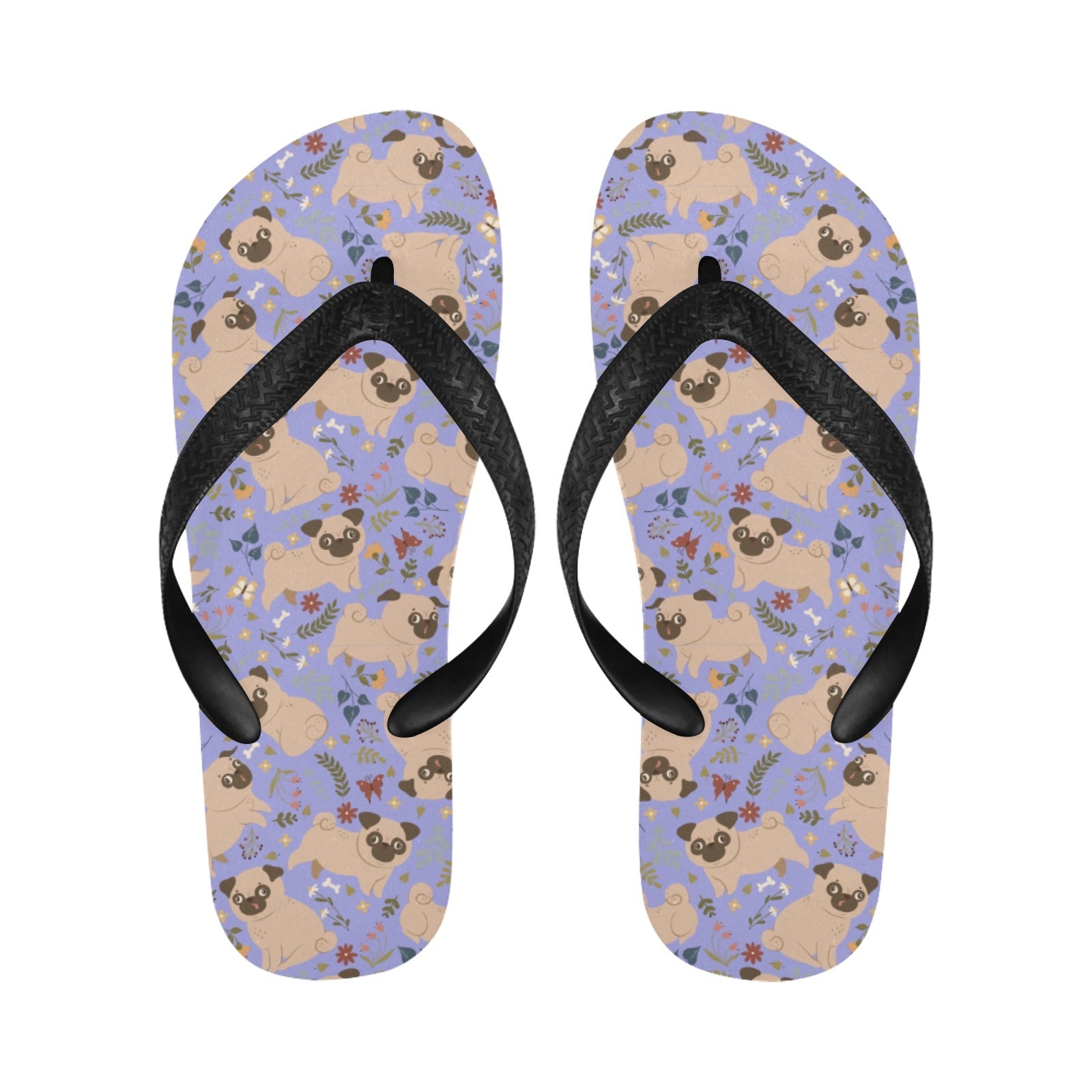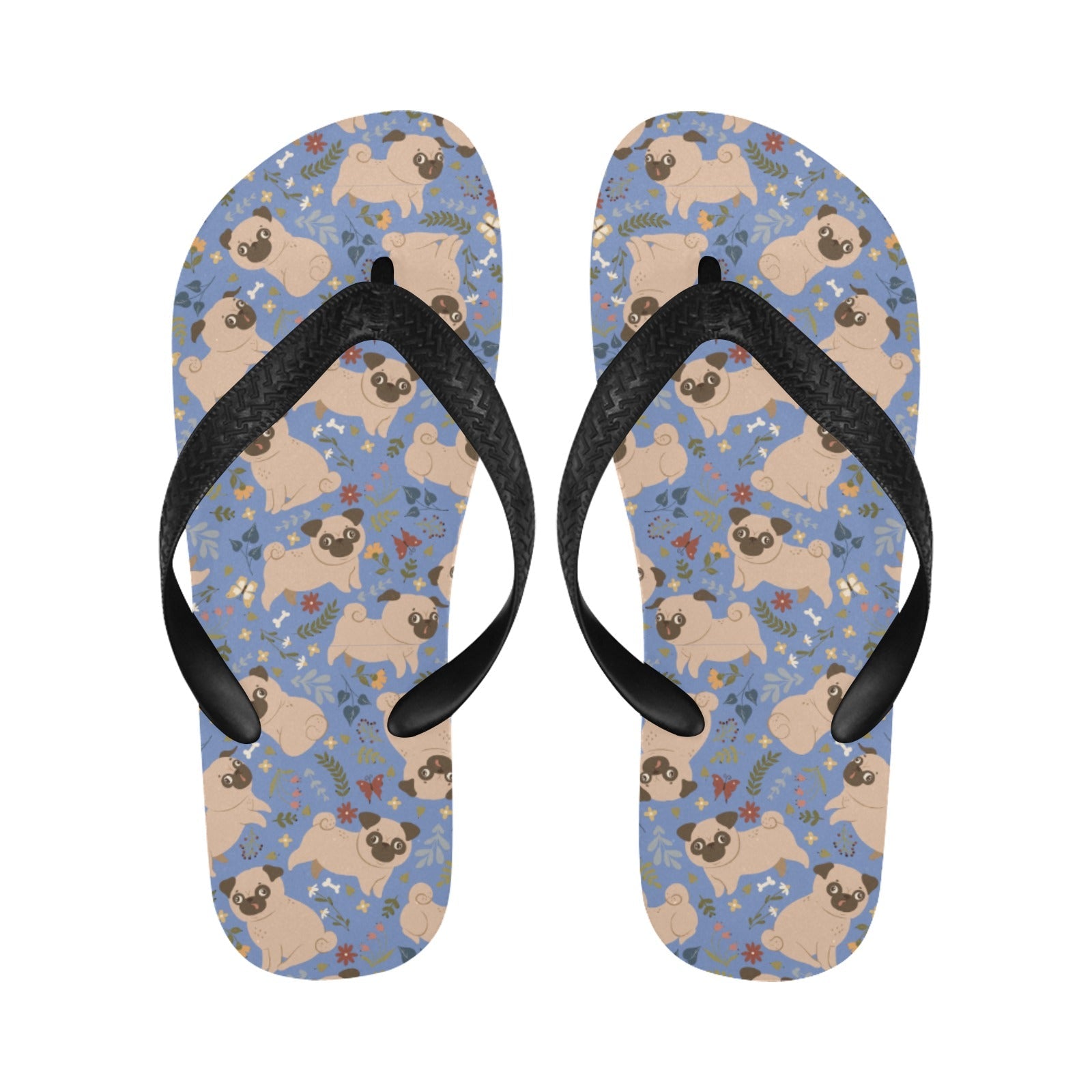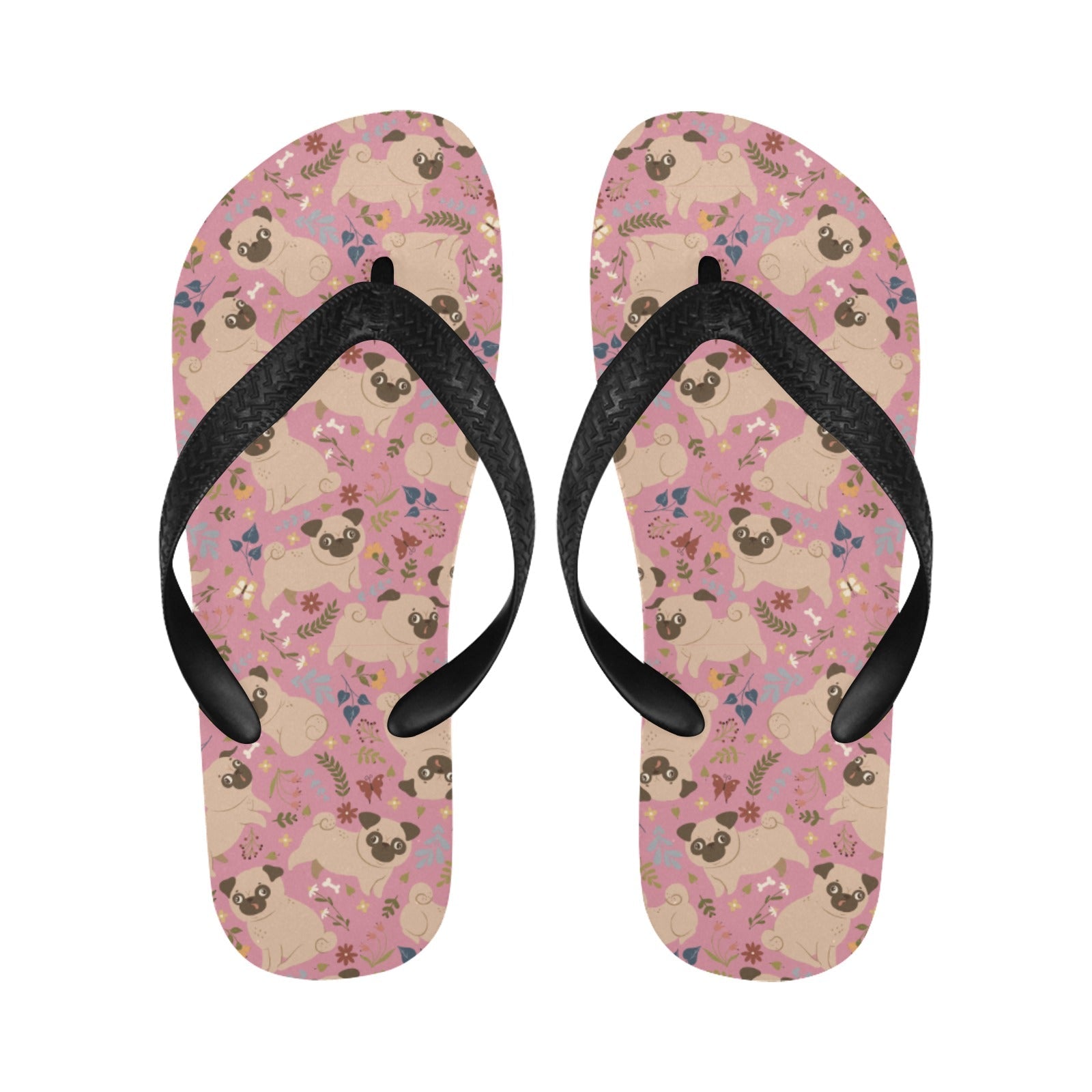 Charming Pugs in Bloom Unisex Slippers-Black-S-24