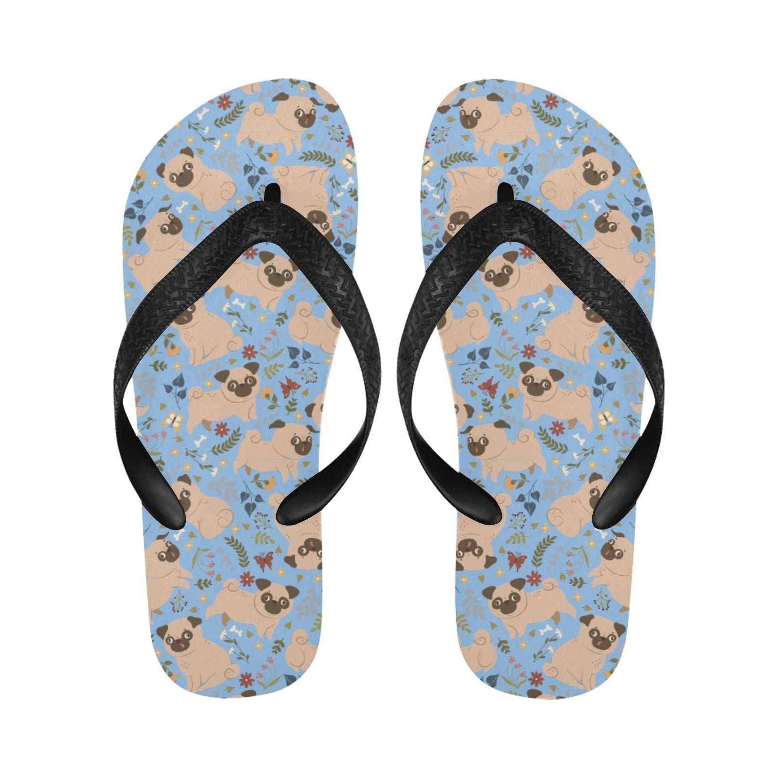 Charming Pugs in Bloom Unisex Slippers-CornflowerBlue_1-S-20