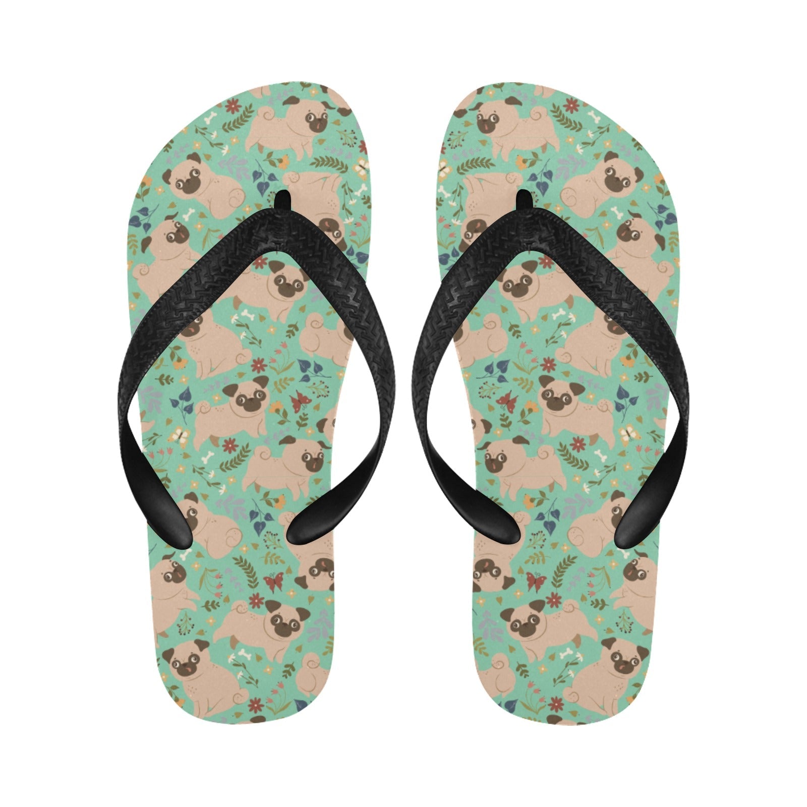 Charming Pugs in Bloom Unisex Slippers-MediumAquaMarine-S-17