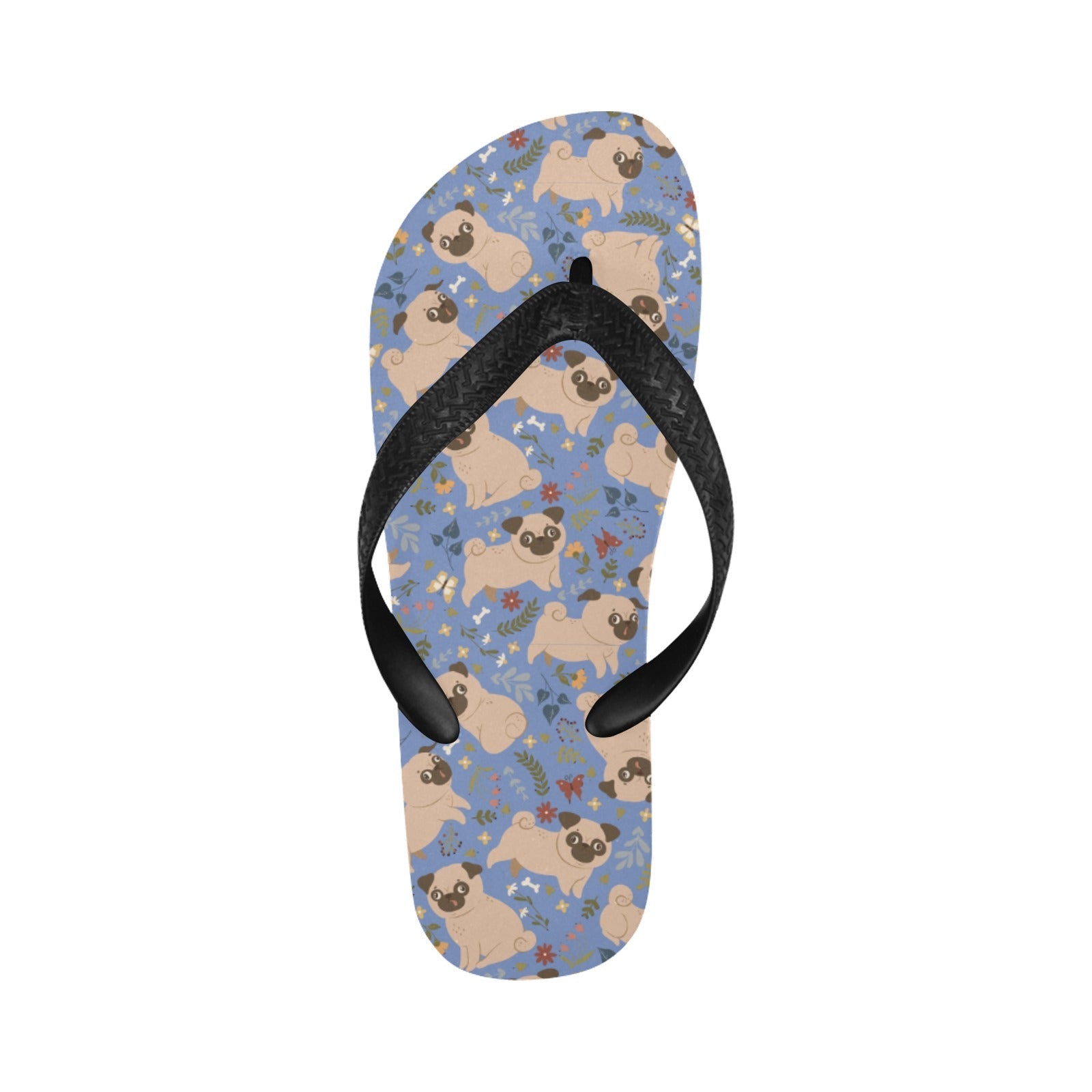 Charming Pugs in Bloom Unisex Slippers-CornflowerBlue-S-13