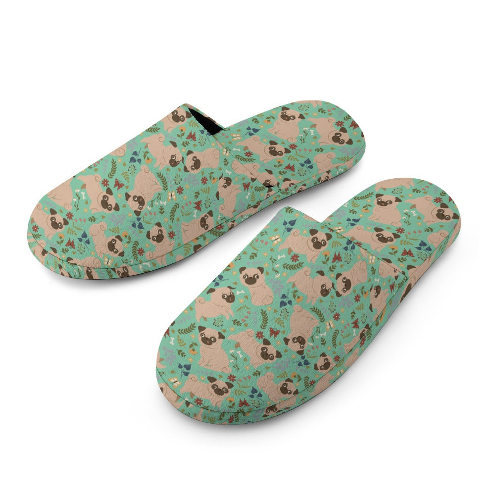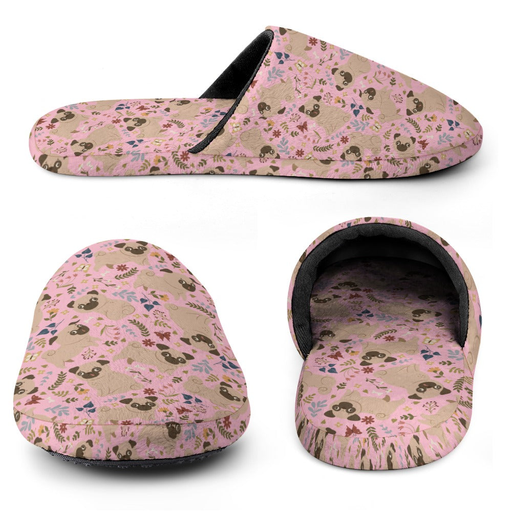 Charming Pugs in Bloom Women's Cotton Mop Slippers-24