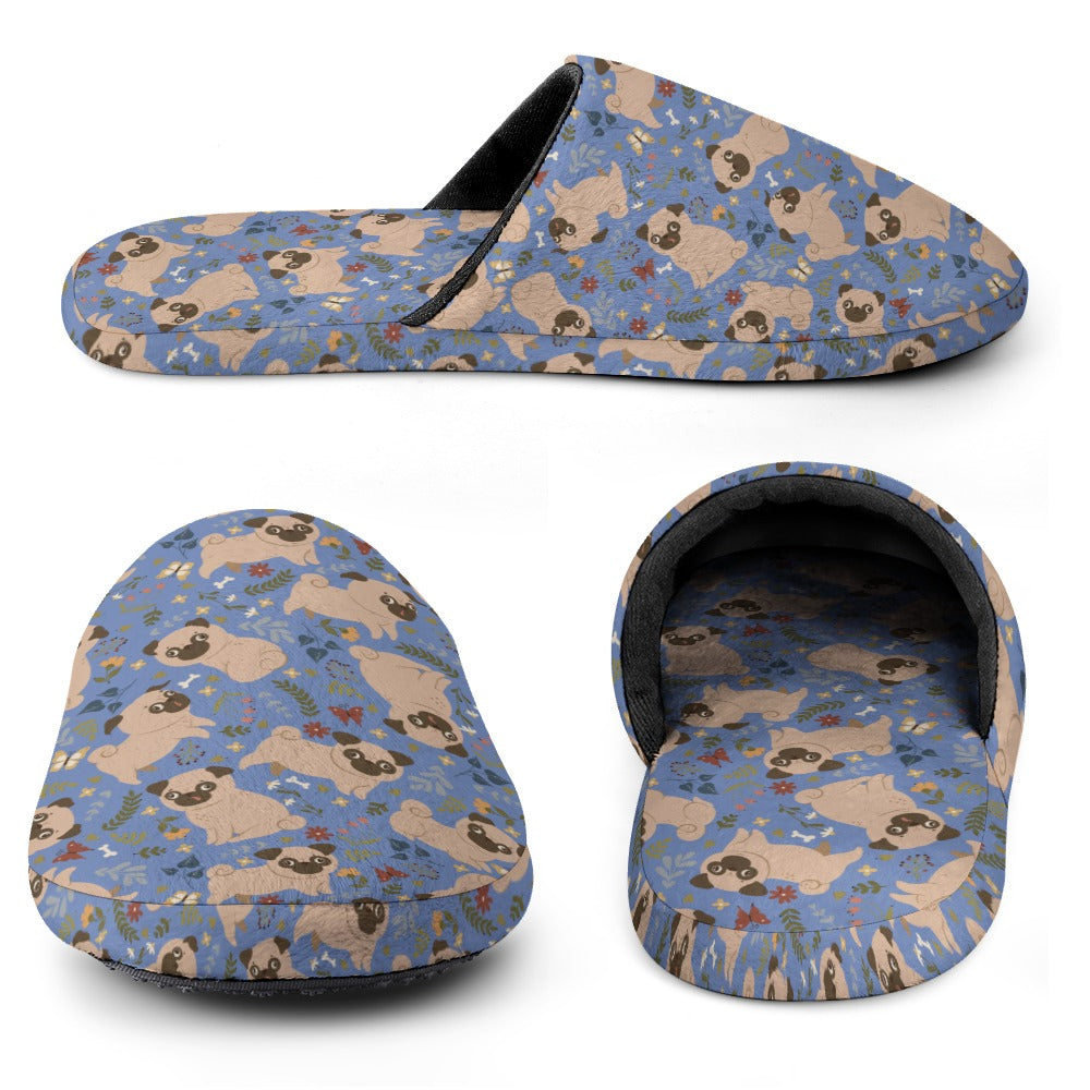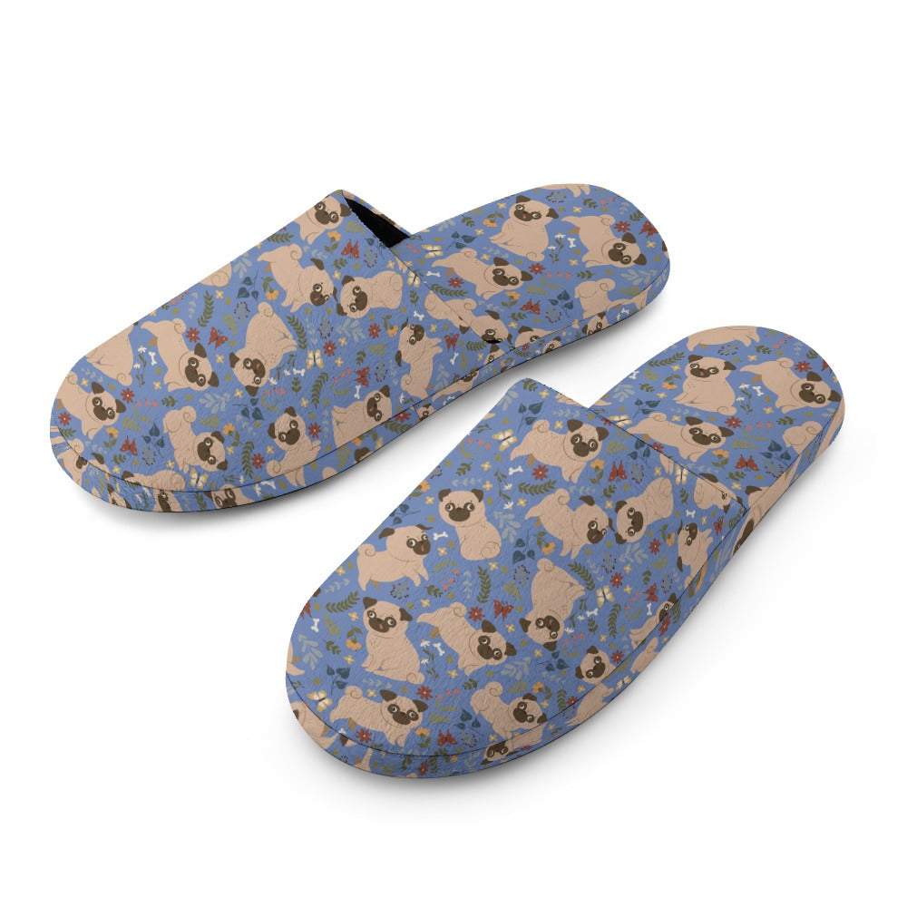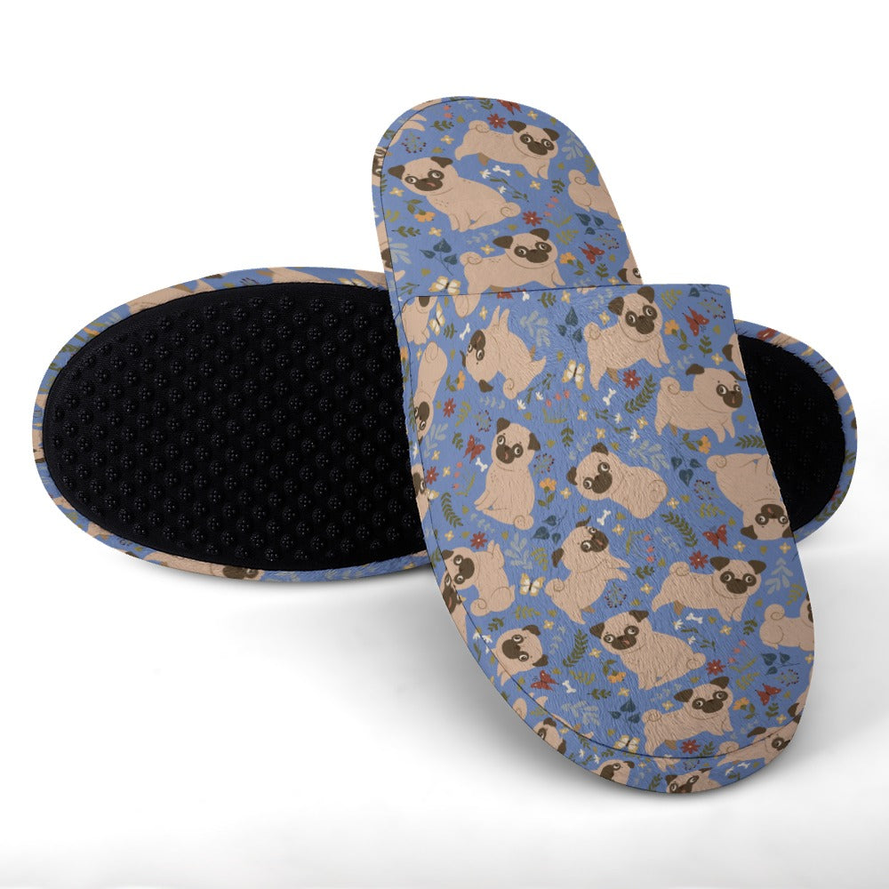 Charming Pugs in Bloom Women's Cotton Mop Slippers-34
