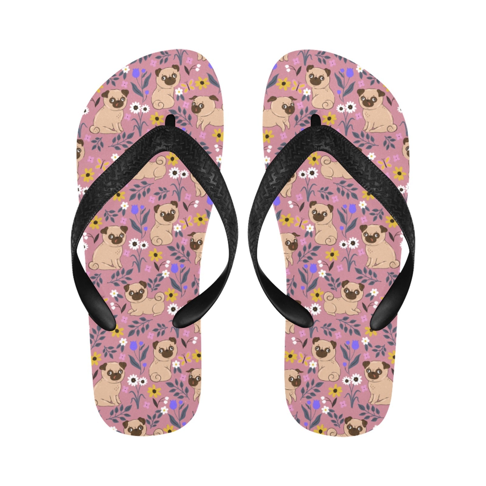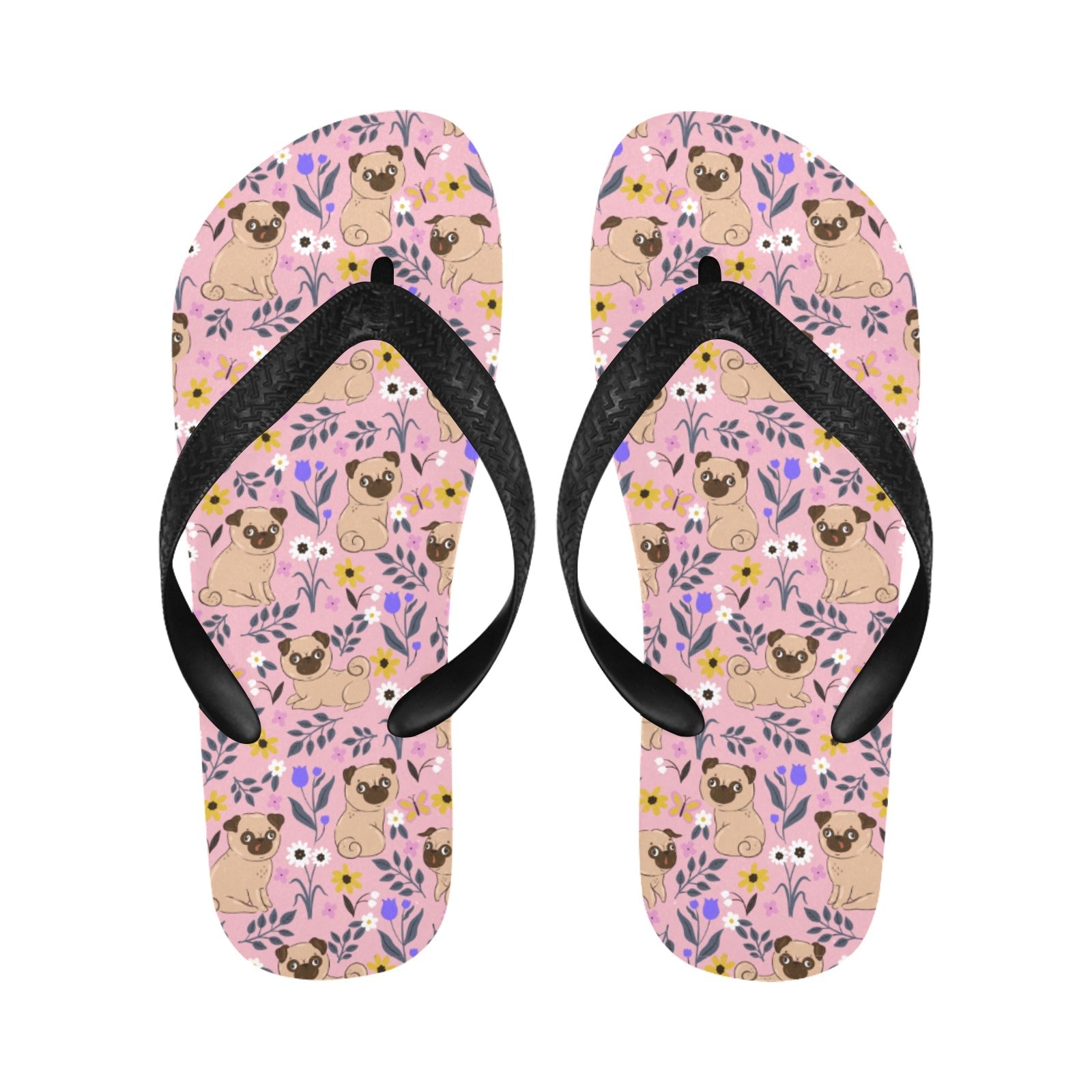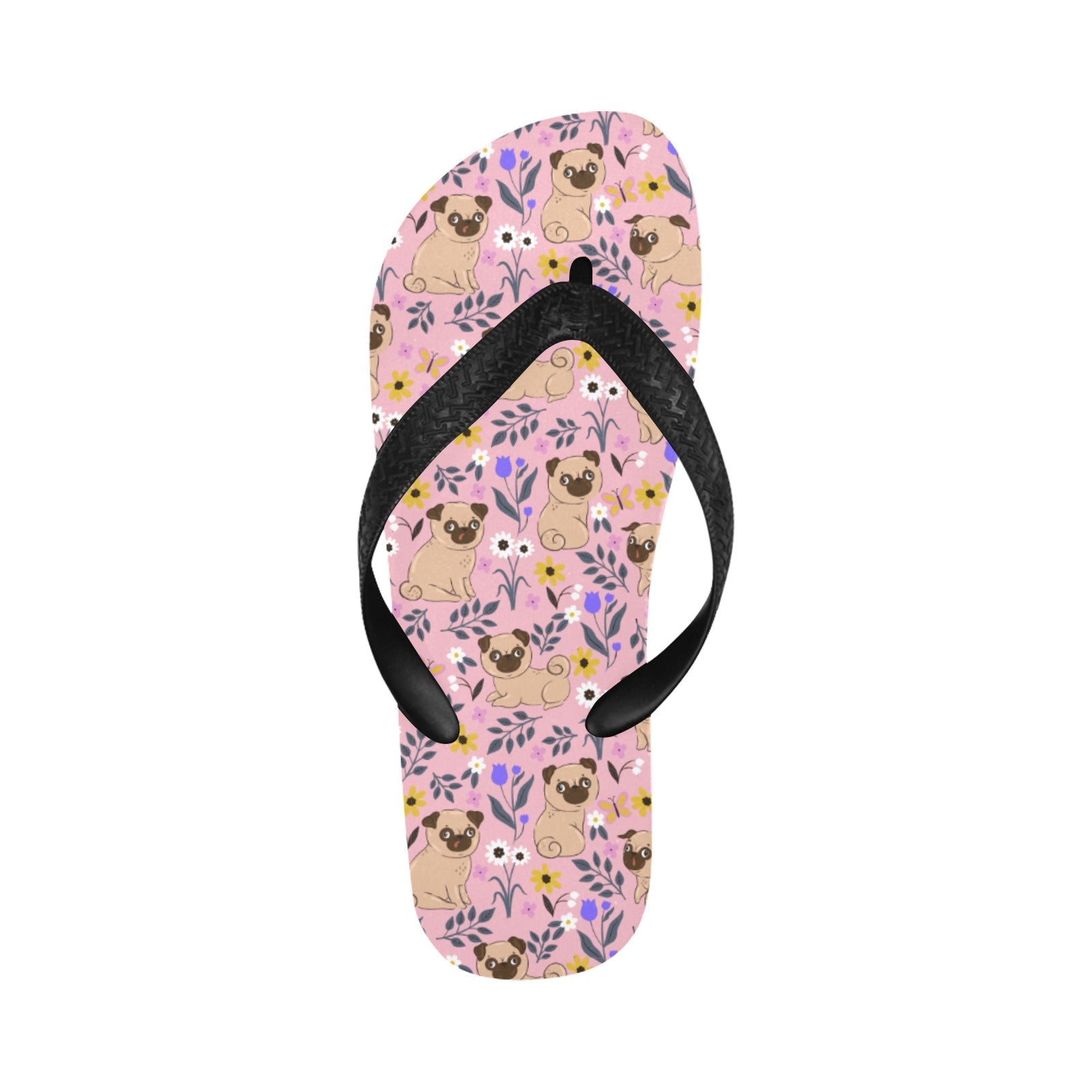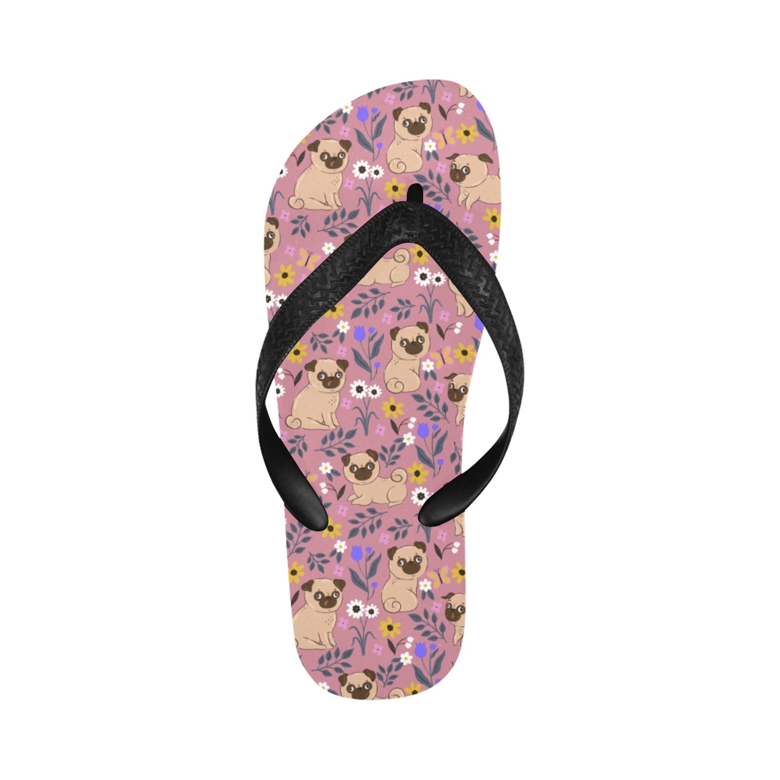 Flower Garden Pug Unisex Slippers-Pink-S-3