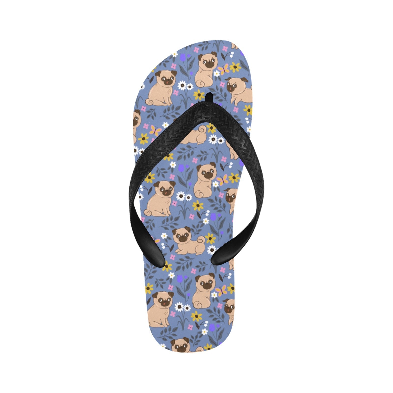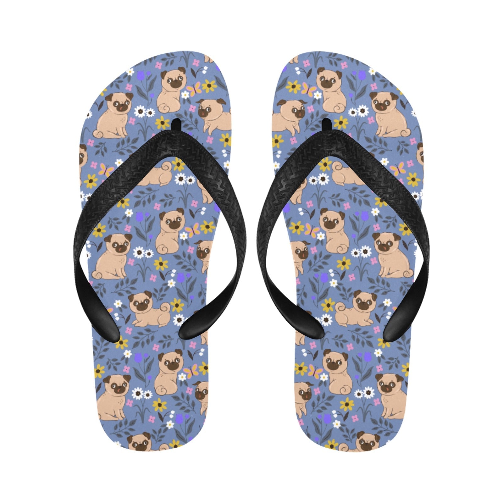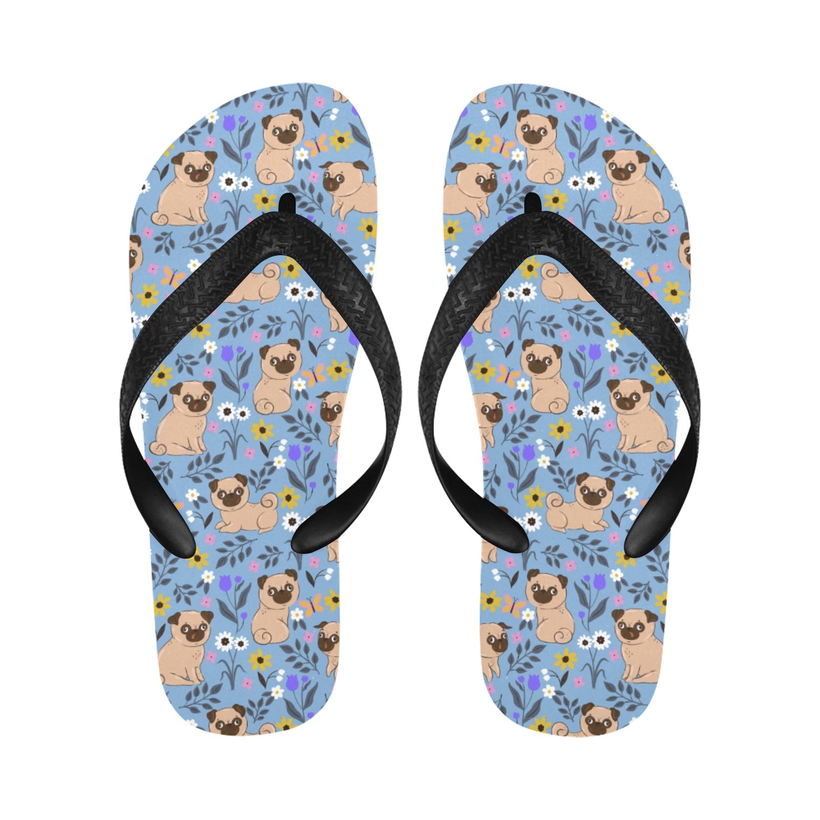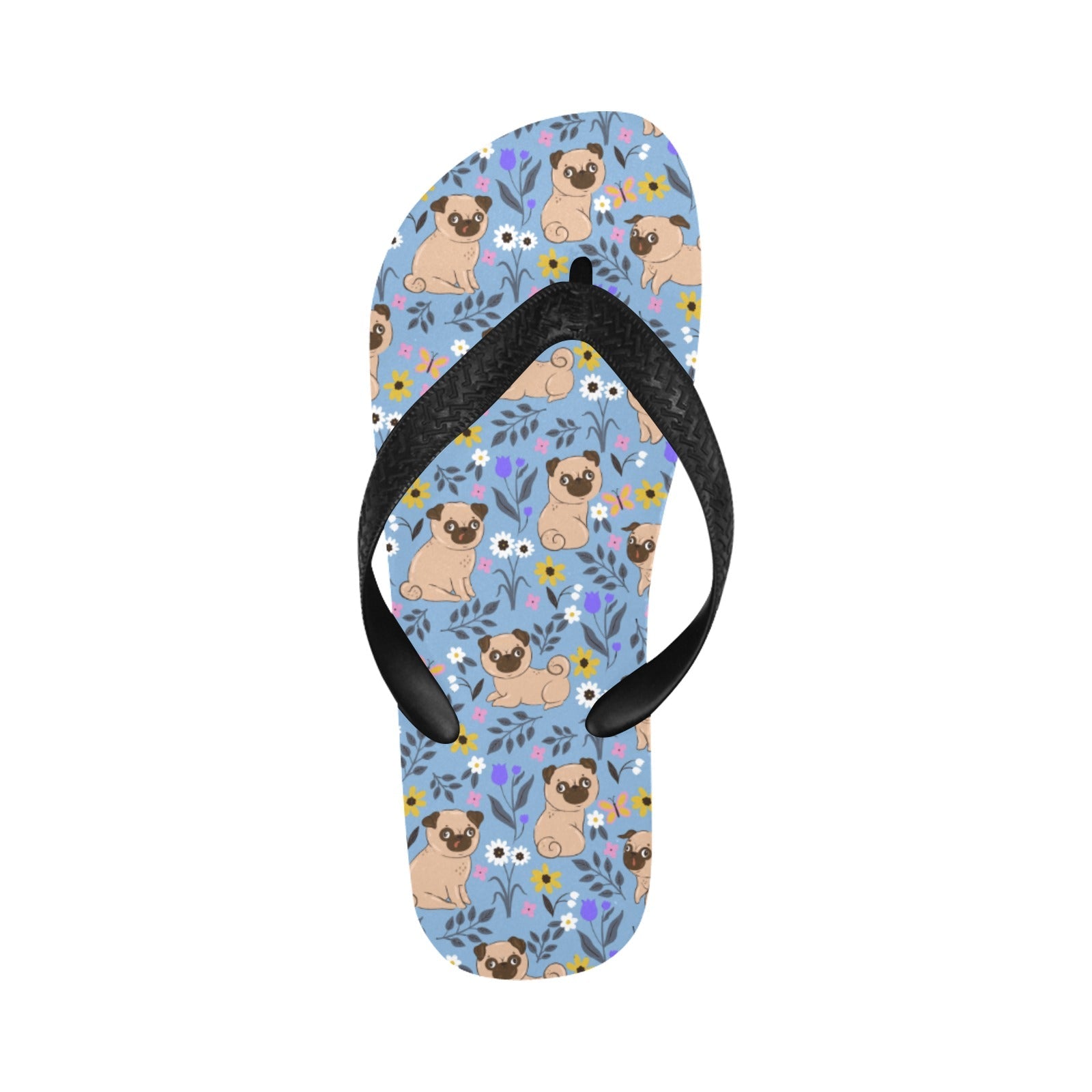 Flower Garden Pug Unisex Slippers-CornflowerBlue_1-S-23