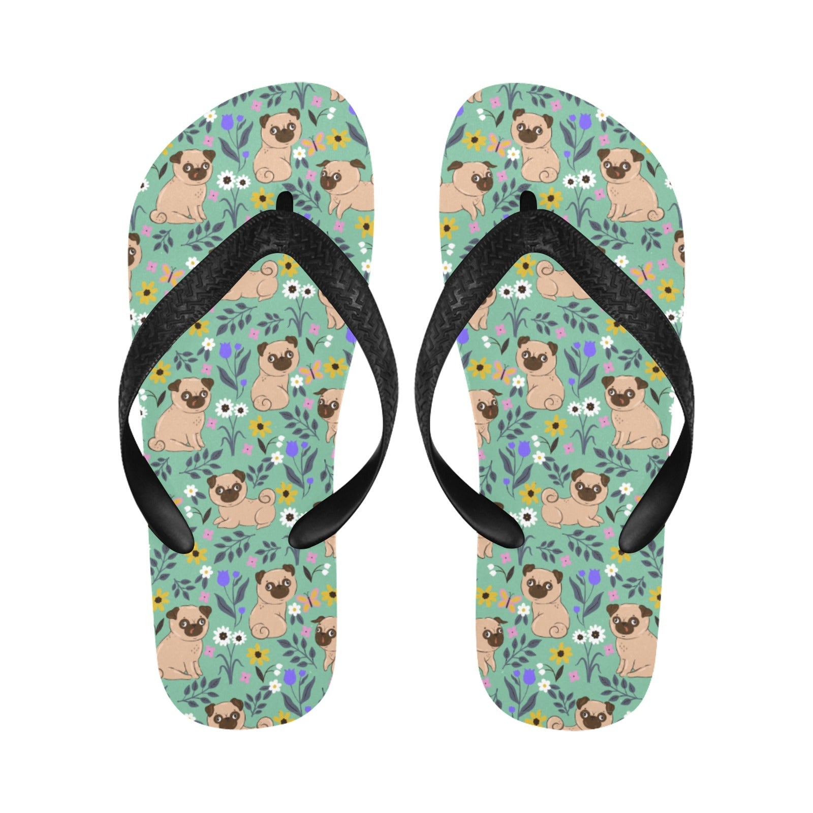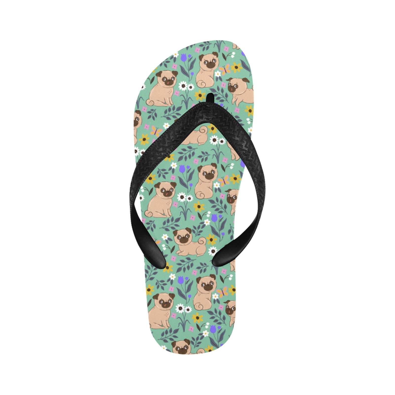 Flower Garden Pug Unisex Slippers-MediumAquaMarine-S-20