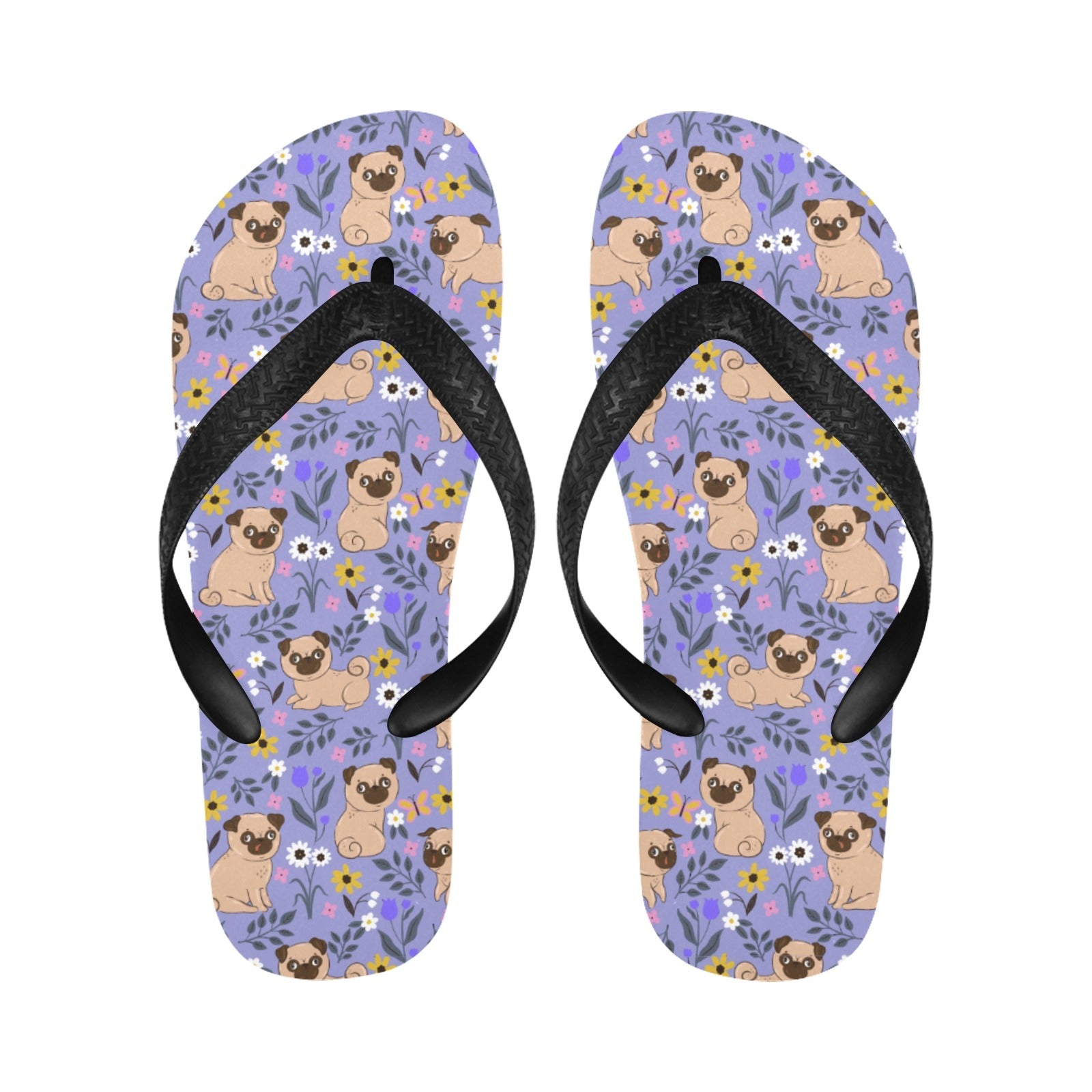 Flower Garden Pug Unisex Slippers-CornflowerBlue-S-12