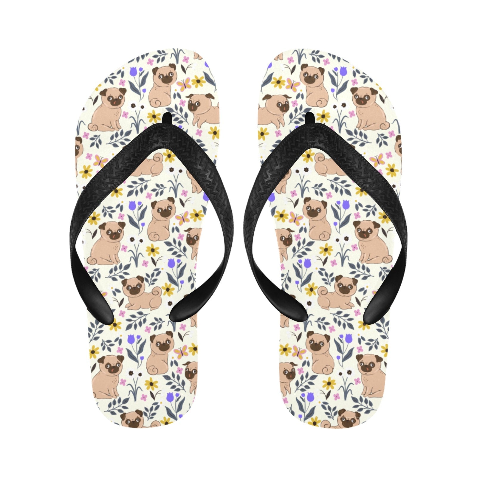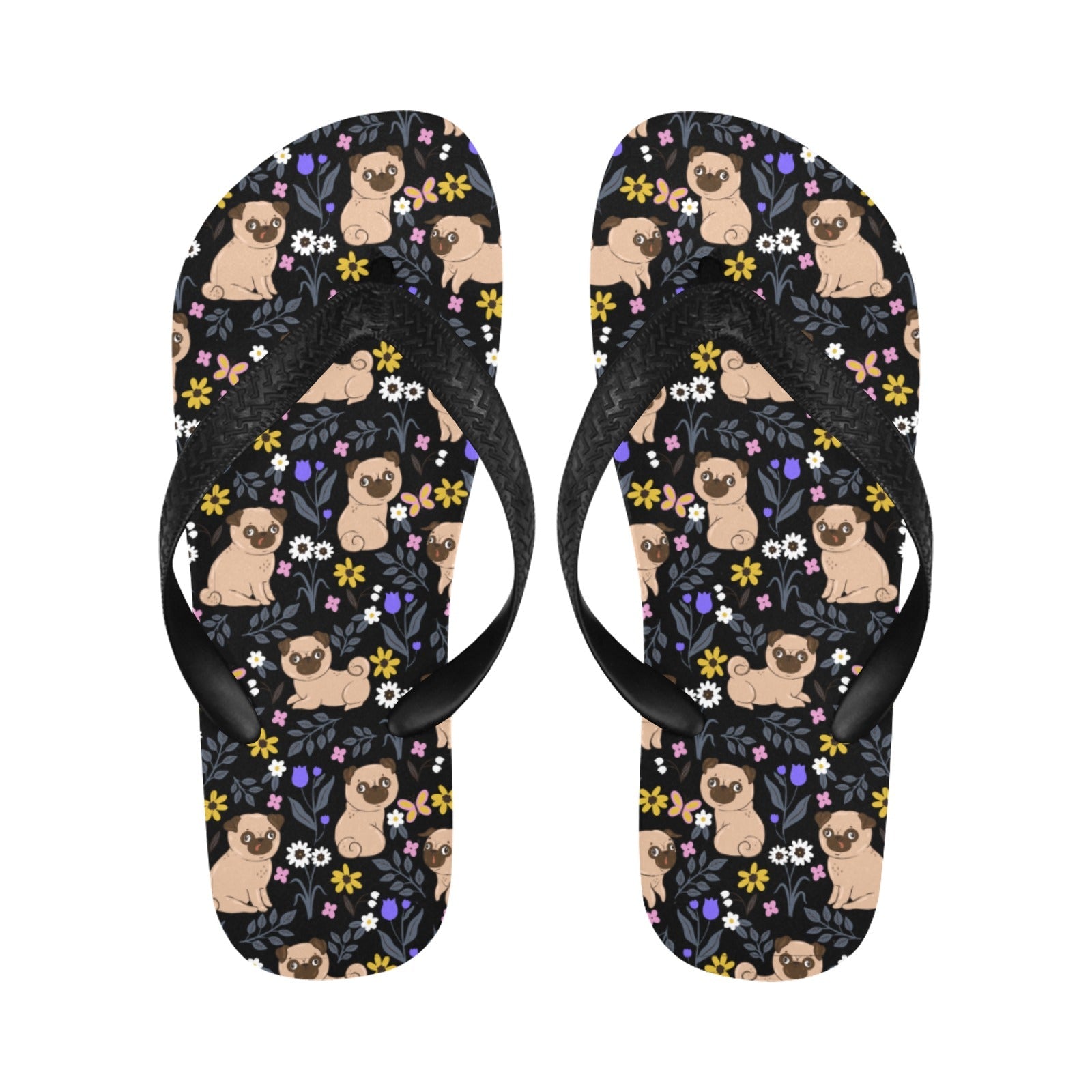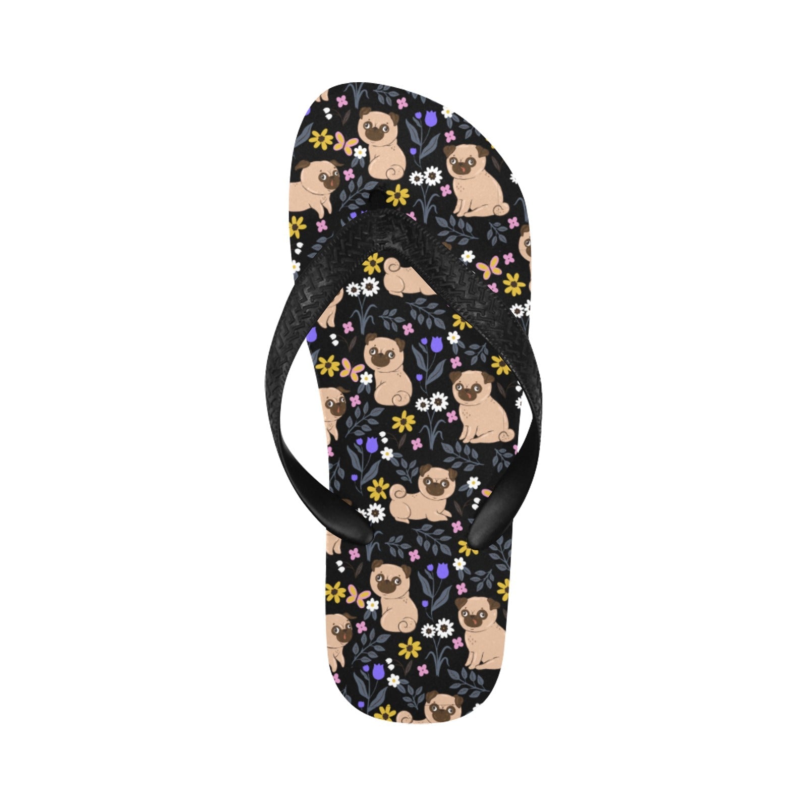 Flower Garden Pug Unisex Slippers-Black-S-27