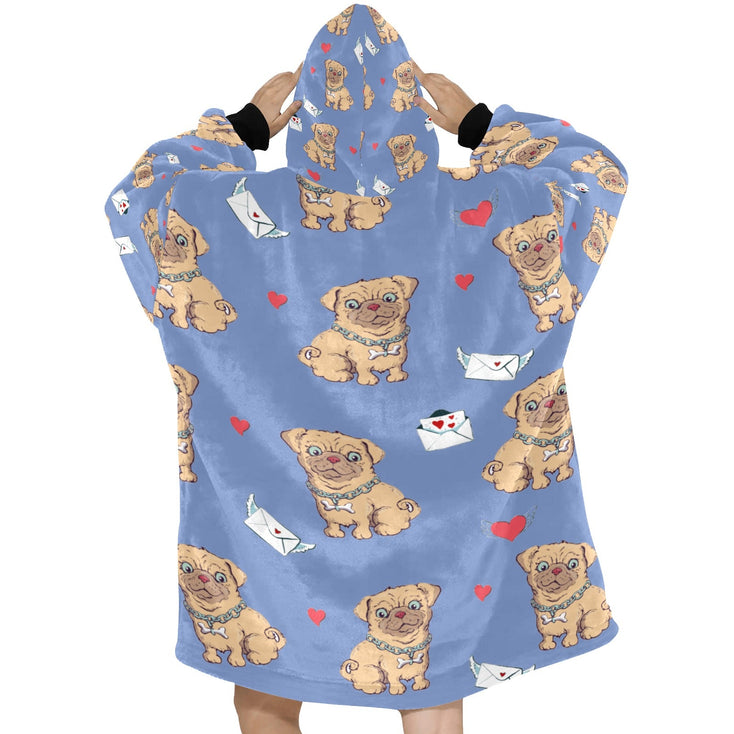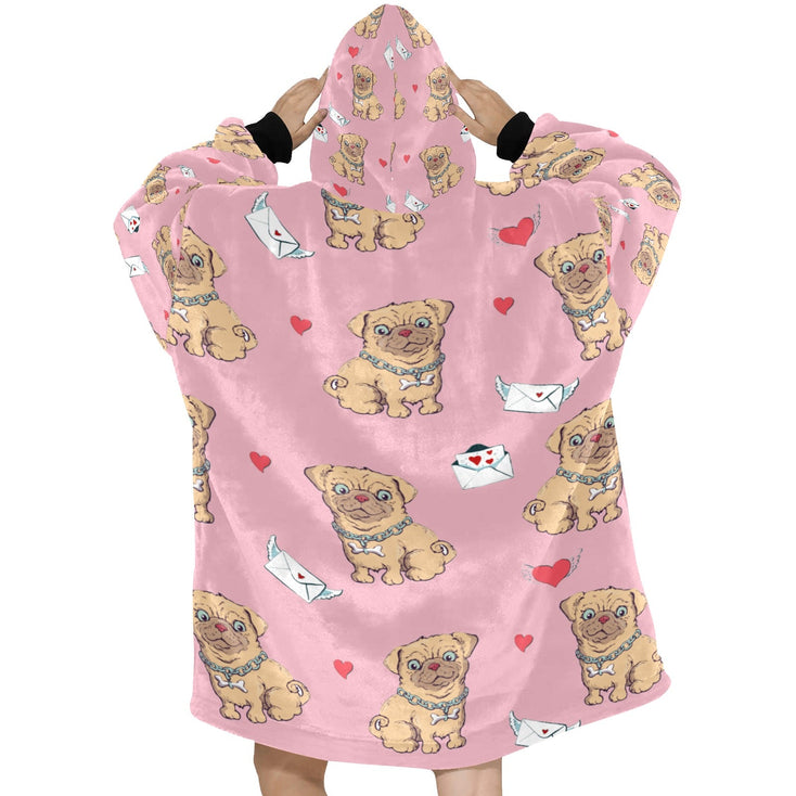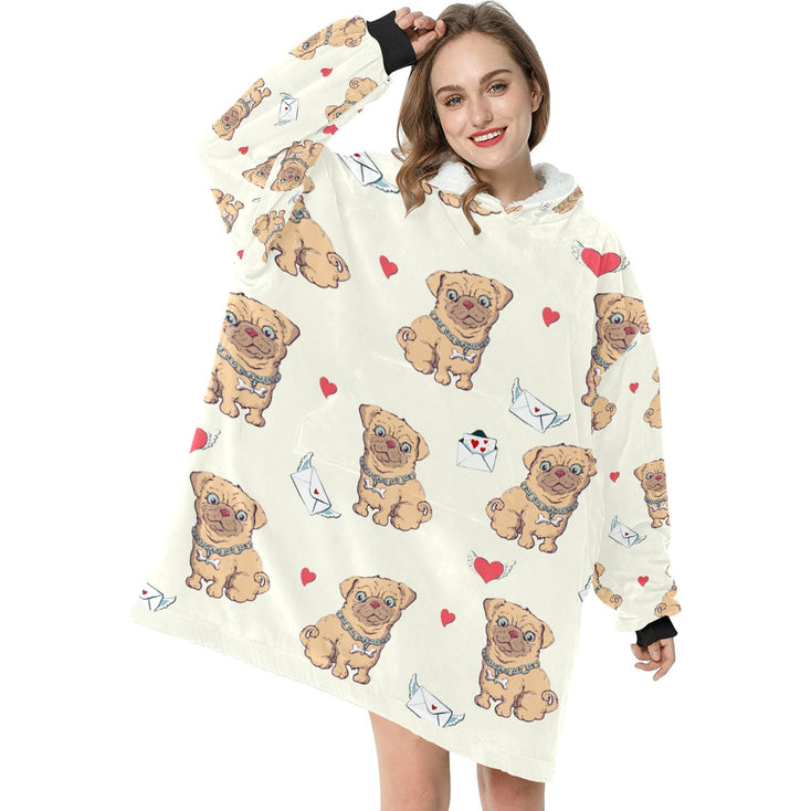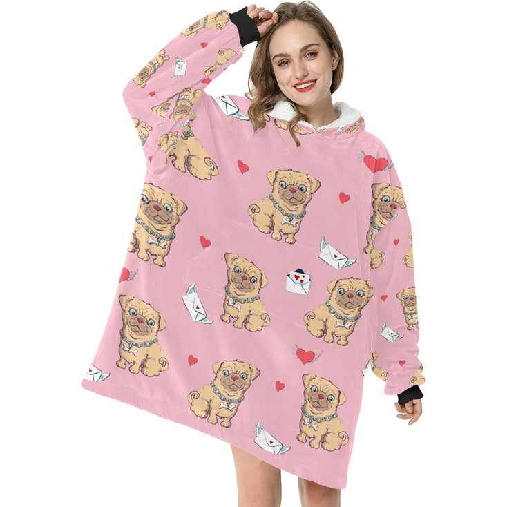 Love Letter Pugs Blanket Hoodie for Women - 4 Colors