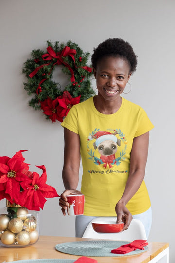 Get into the festive spirit with our "Merry Christmas Pug" Women's Cotton T-Shirt!